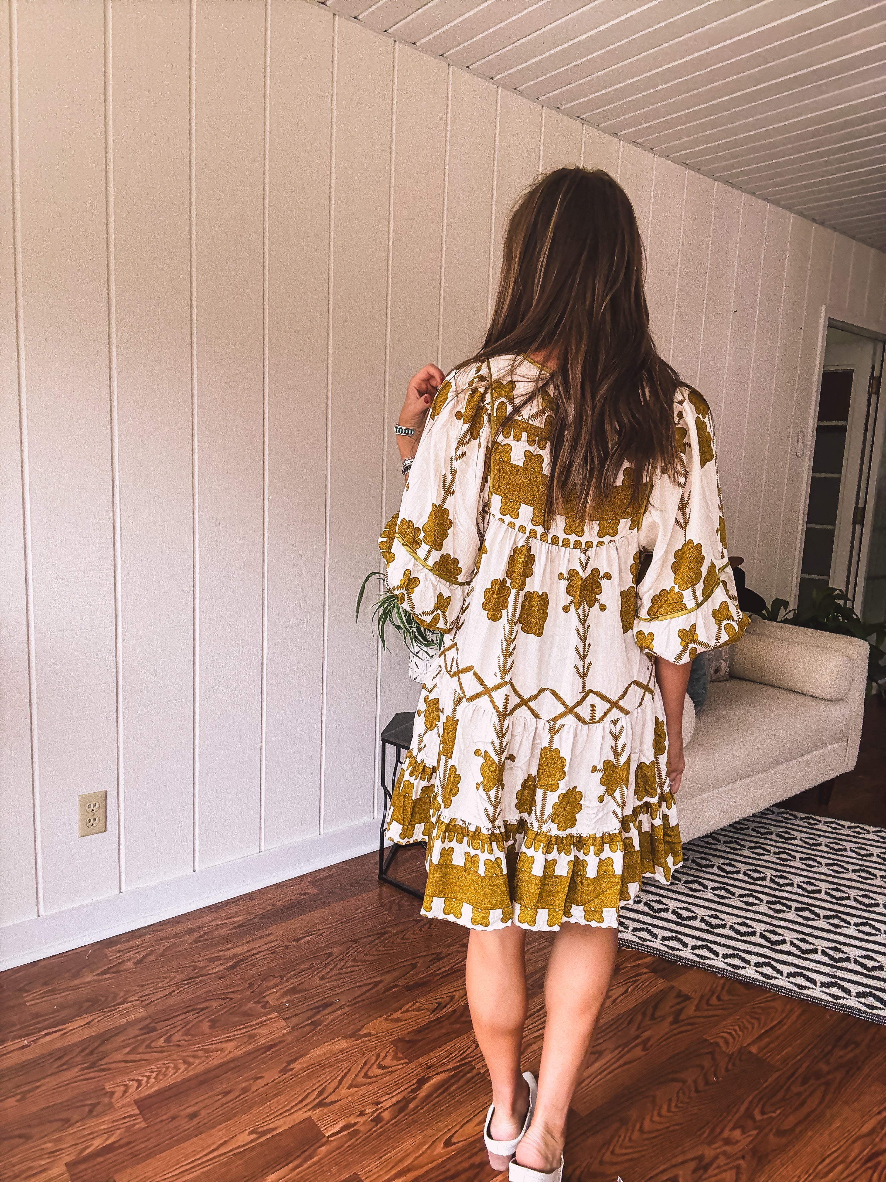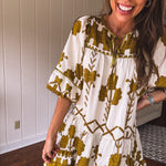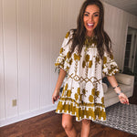 Mustard Green Tribal Tiered Dress
