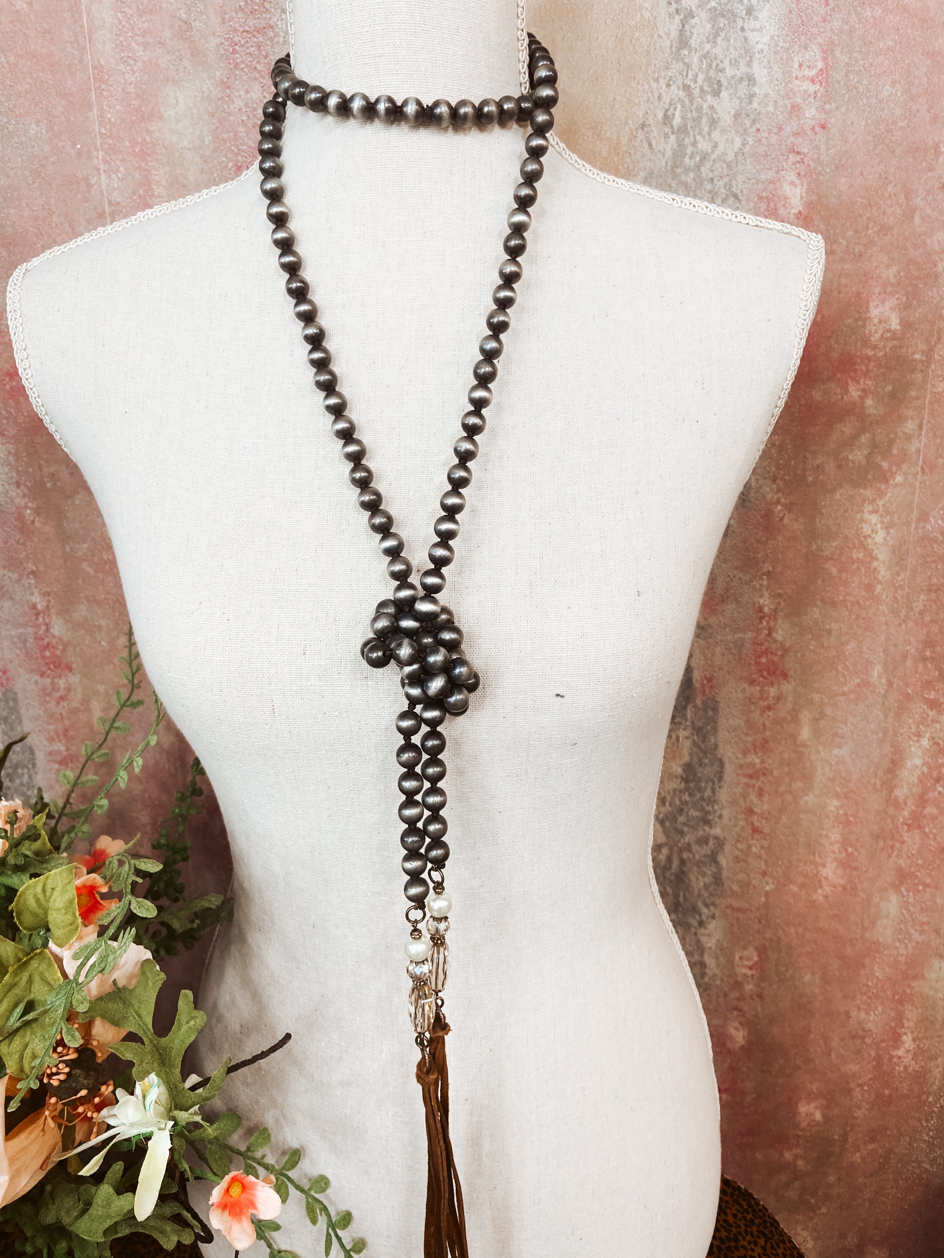 Gray Tiger Eye Wrap Necklace w/ Charmed Accent
