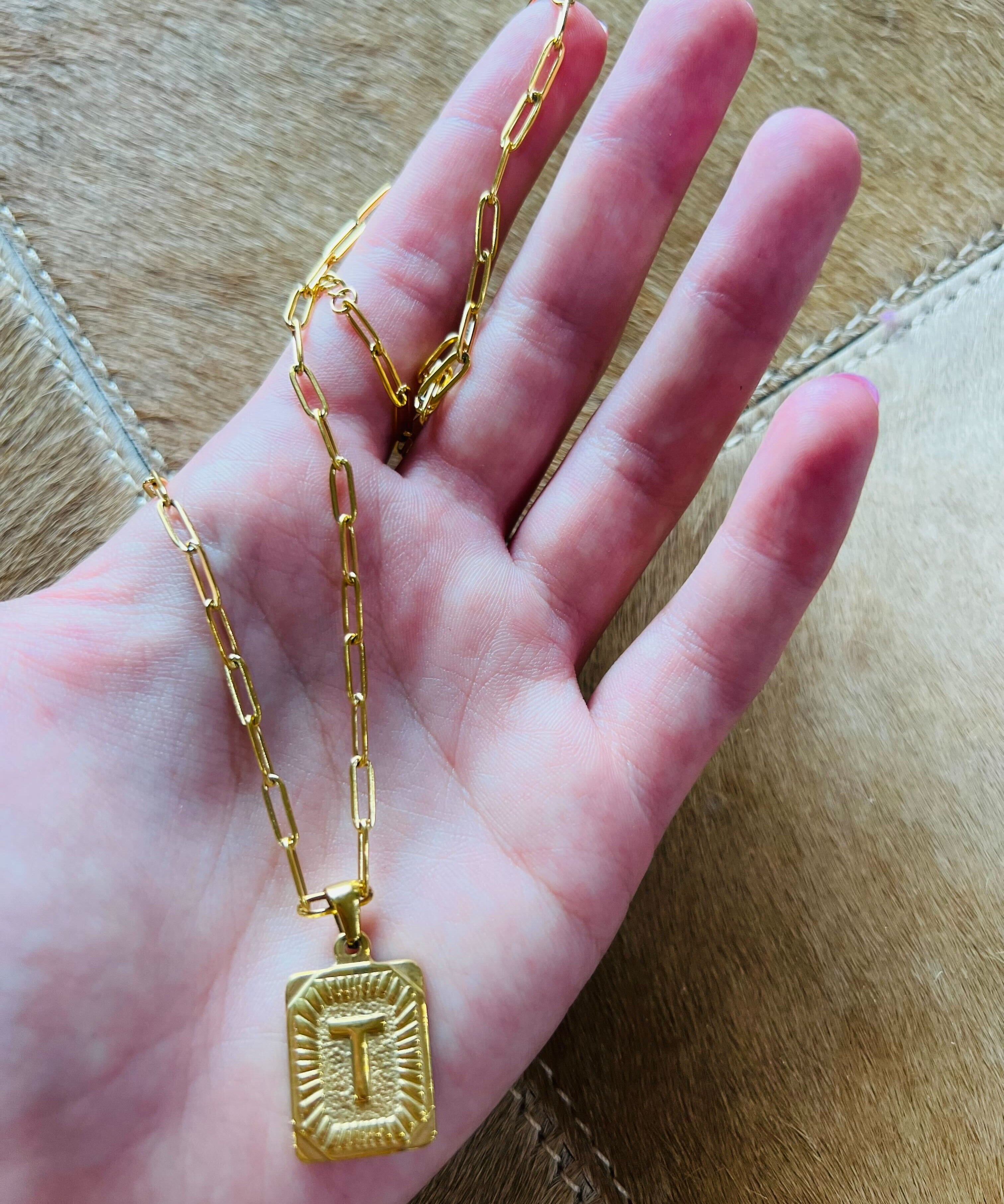 2" Stamped + Turquoise Initial Box Chain Necklace