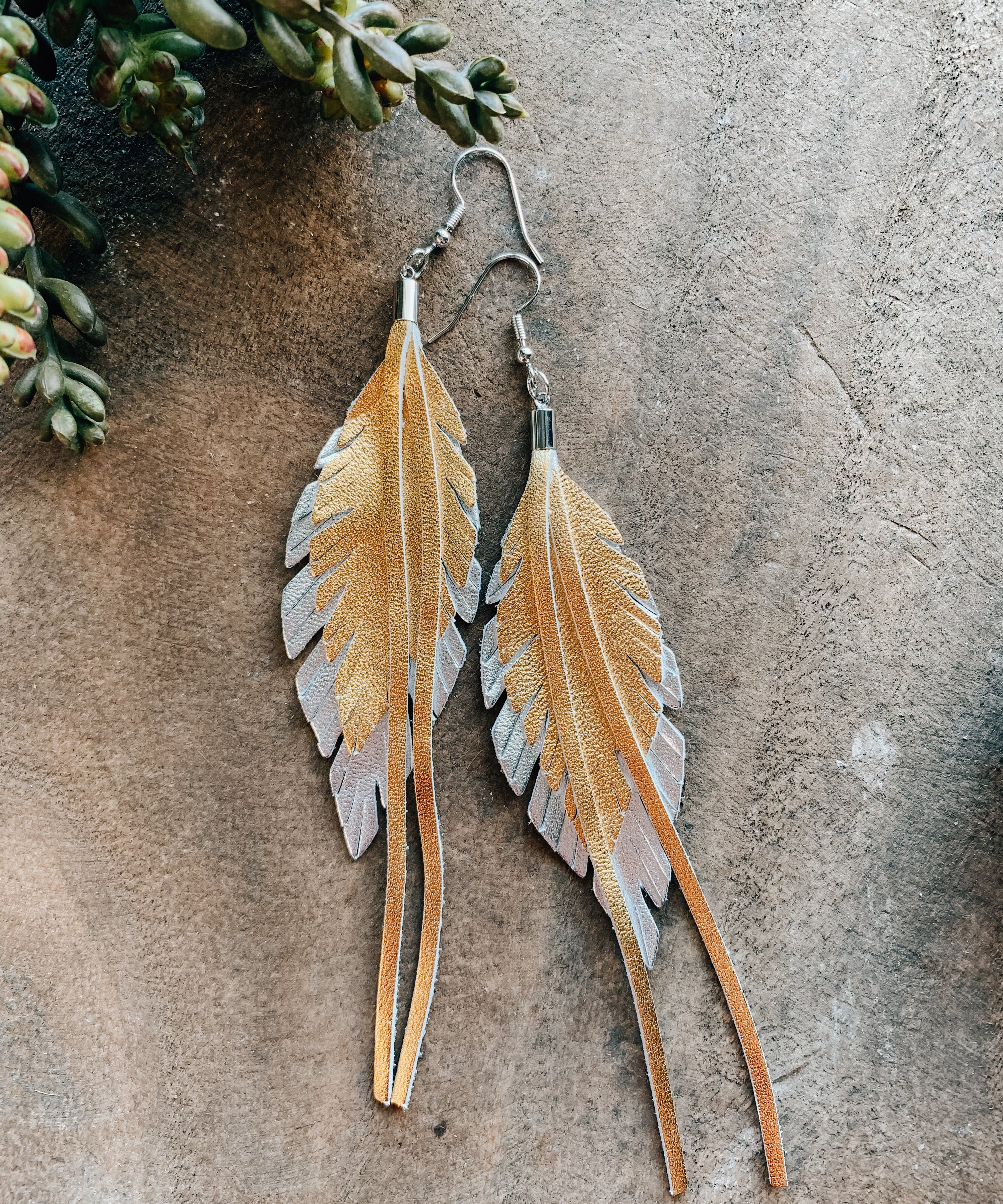 TERRA COTTA IVORY EMERALD GOLD FRINGE EARRINGS