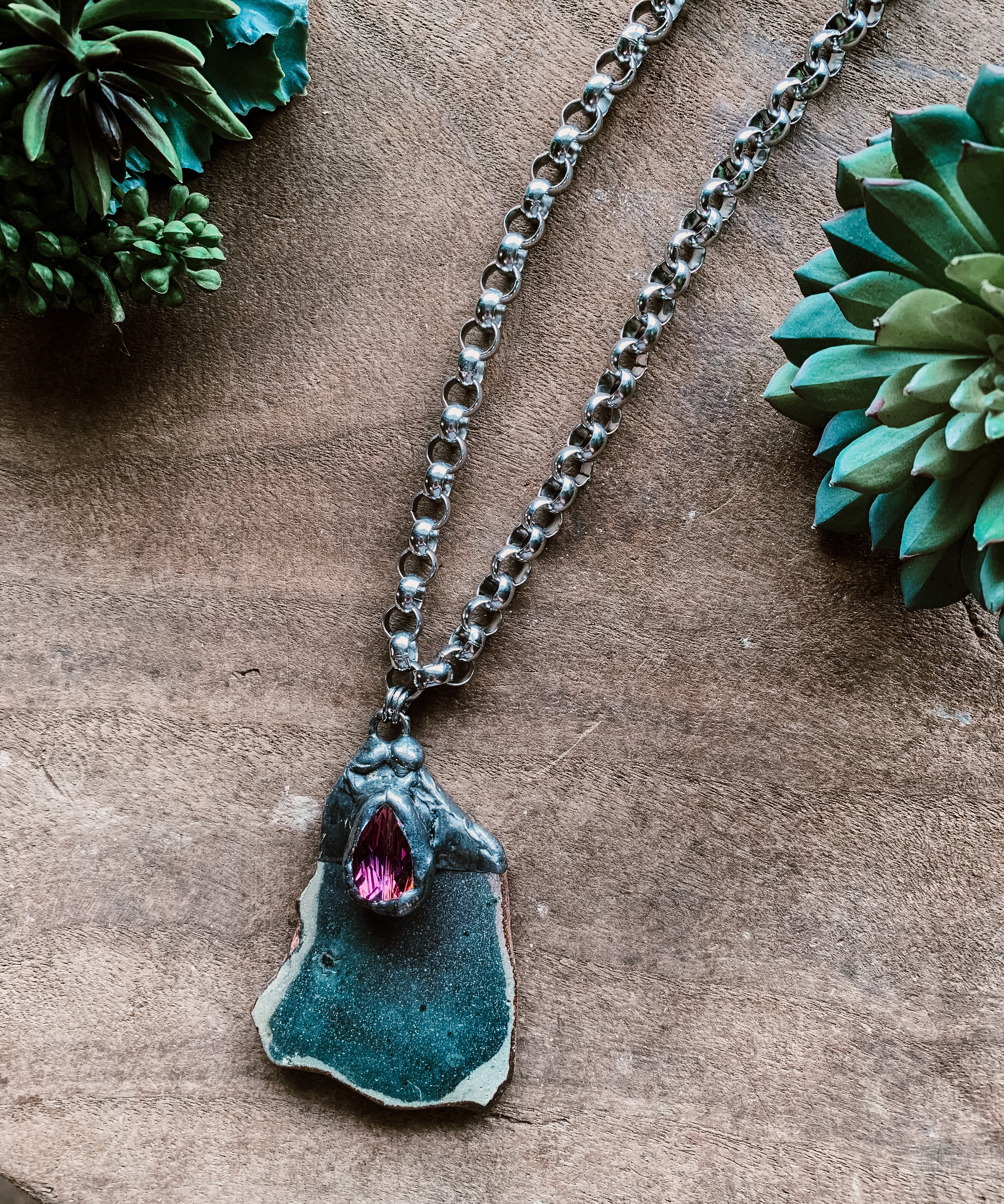 Cutout Teardrop with Fuchsia Stone