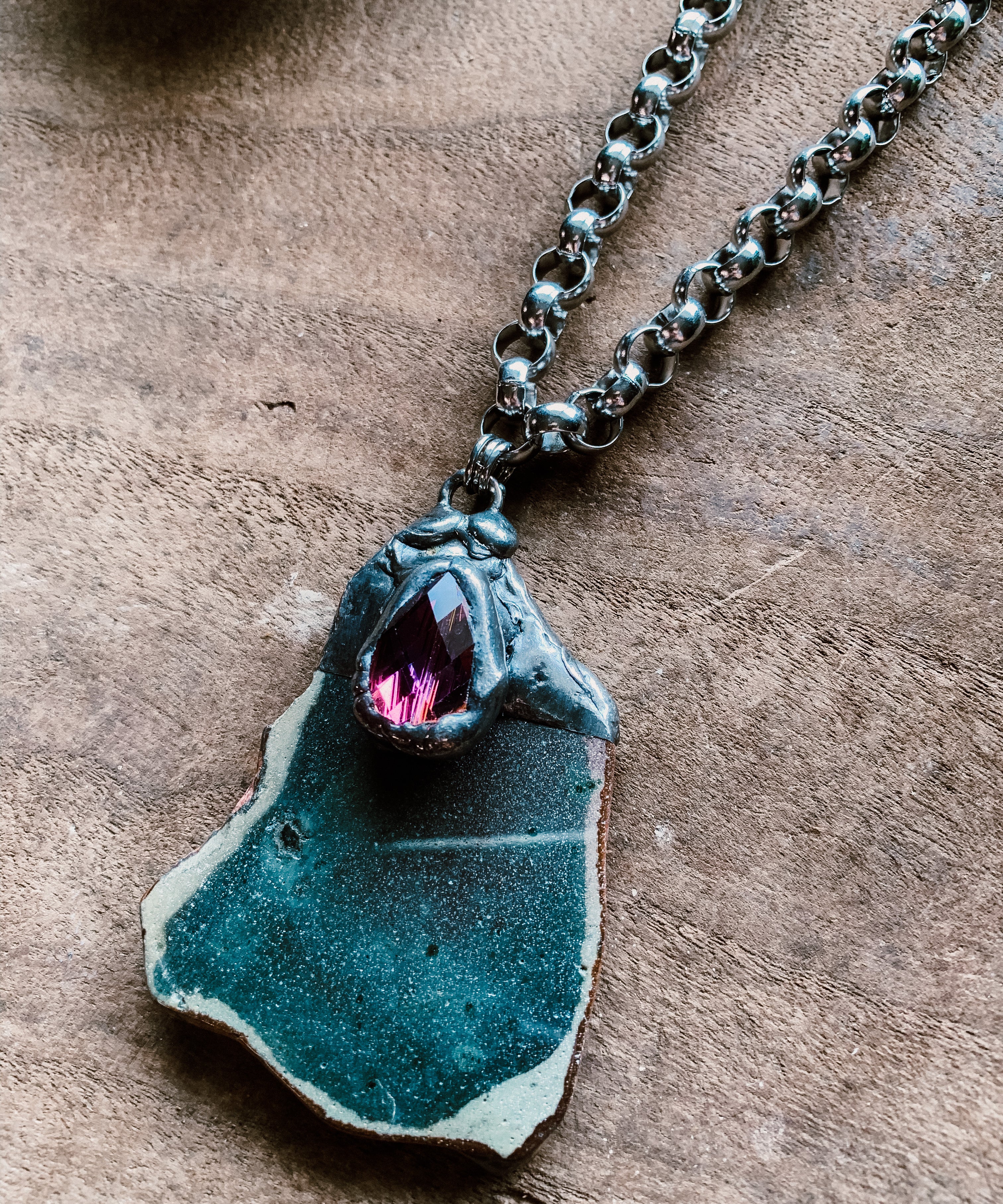 Metal Necklace with Agate Stone & Amethyst Crystal