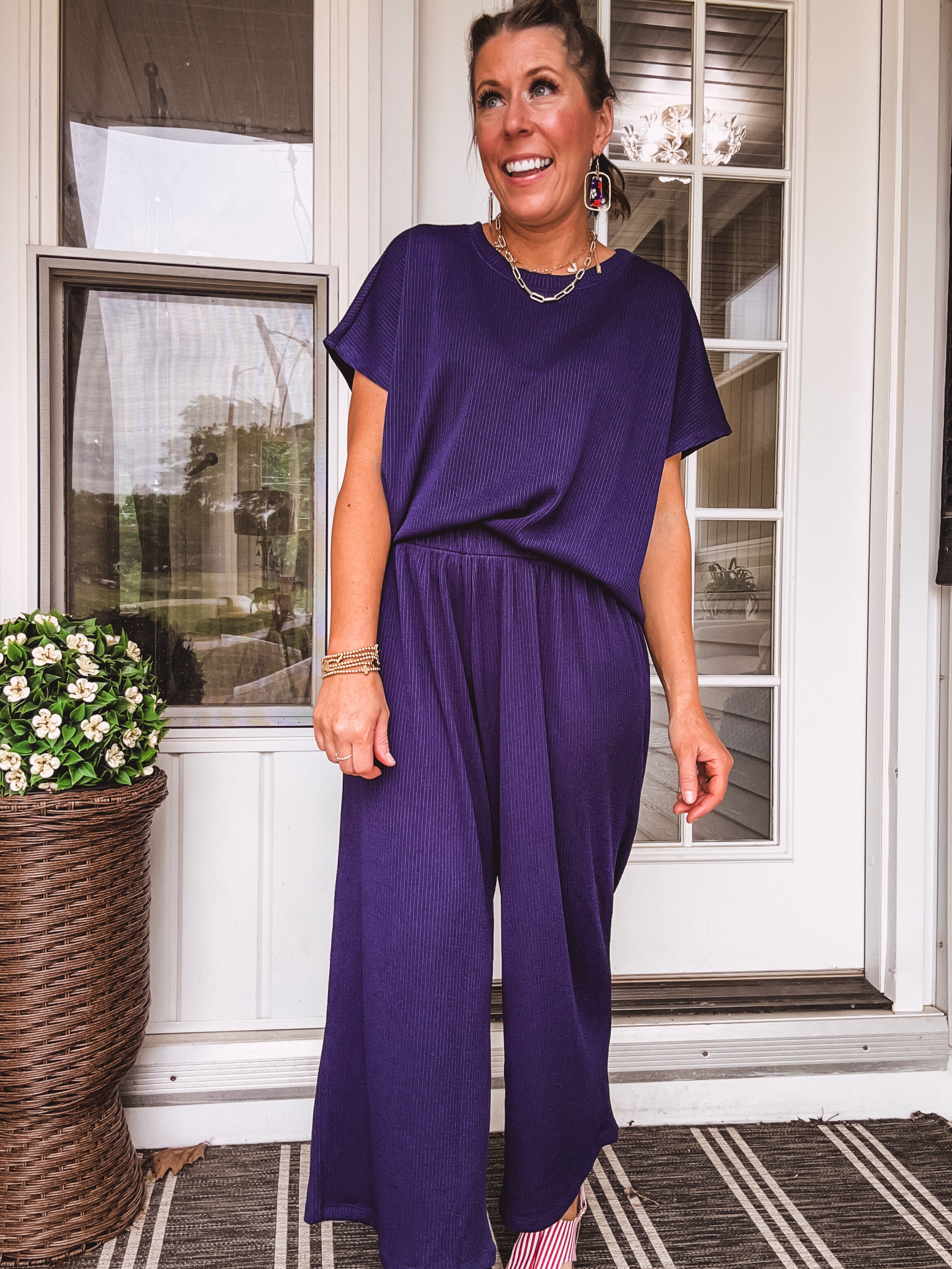 Get ready to turn heads wherever you roam! This dreamy navy travel set is your ticket to effortless style whether you're beach-hopping, hitting the shops with your squad, or painting the town red. The luxuriously soft, ribbed fabric feels like a gentle hug, while the classic navy shade keeps you looking chic from sunrise to sunset.