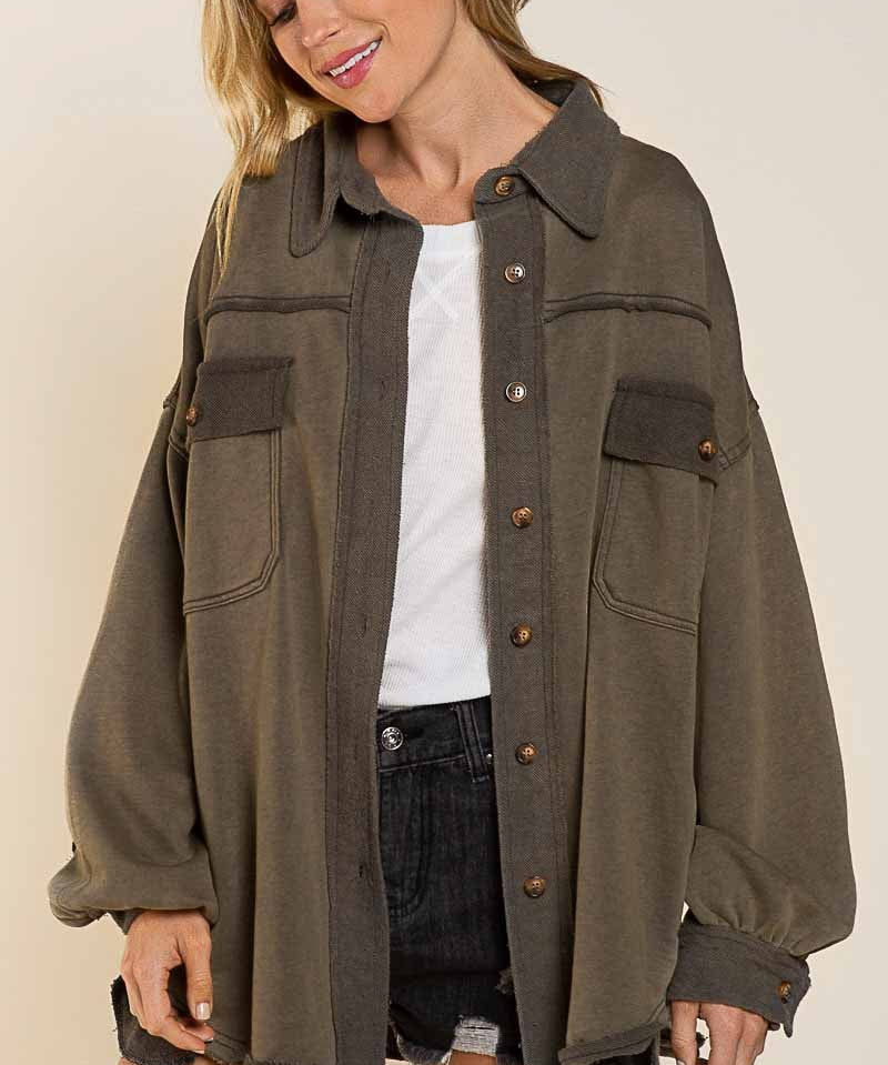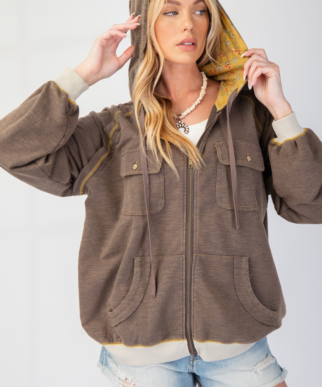 Ash Mineral Wash Zip Up Jacket with Contrast Stitch