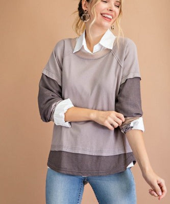 Ash + Taupe Crew Neck Mix + Match Long Sleeve Top