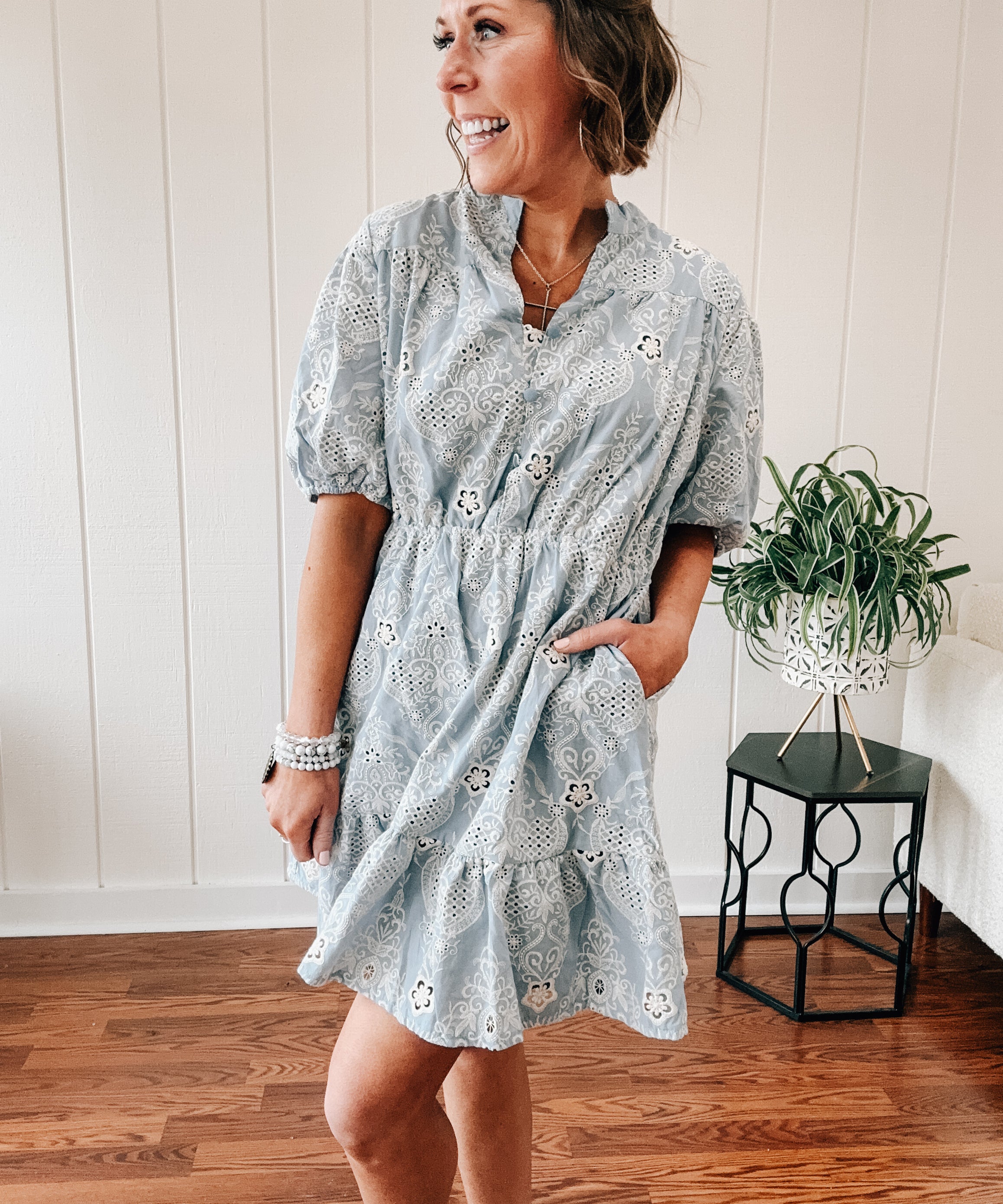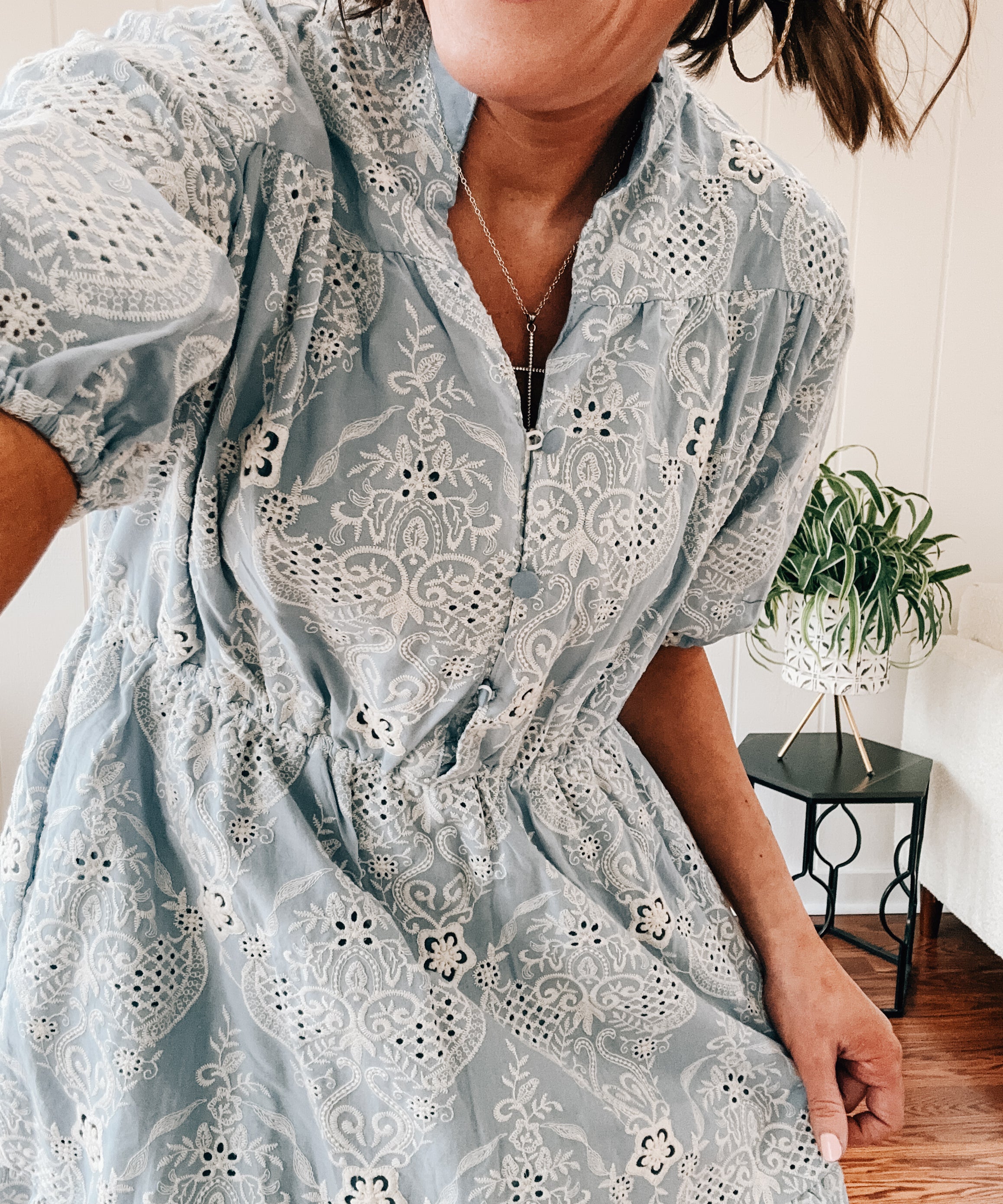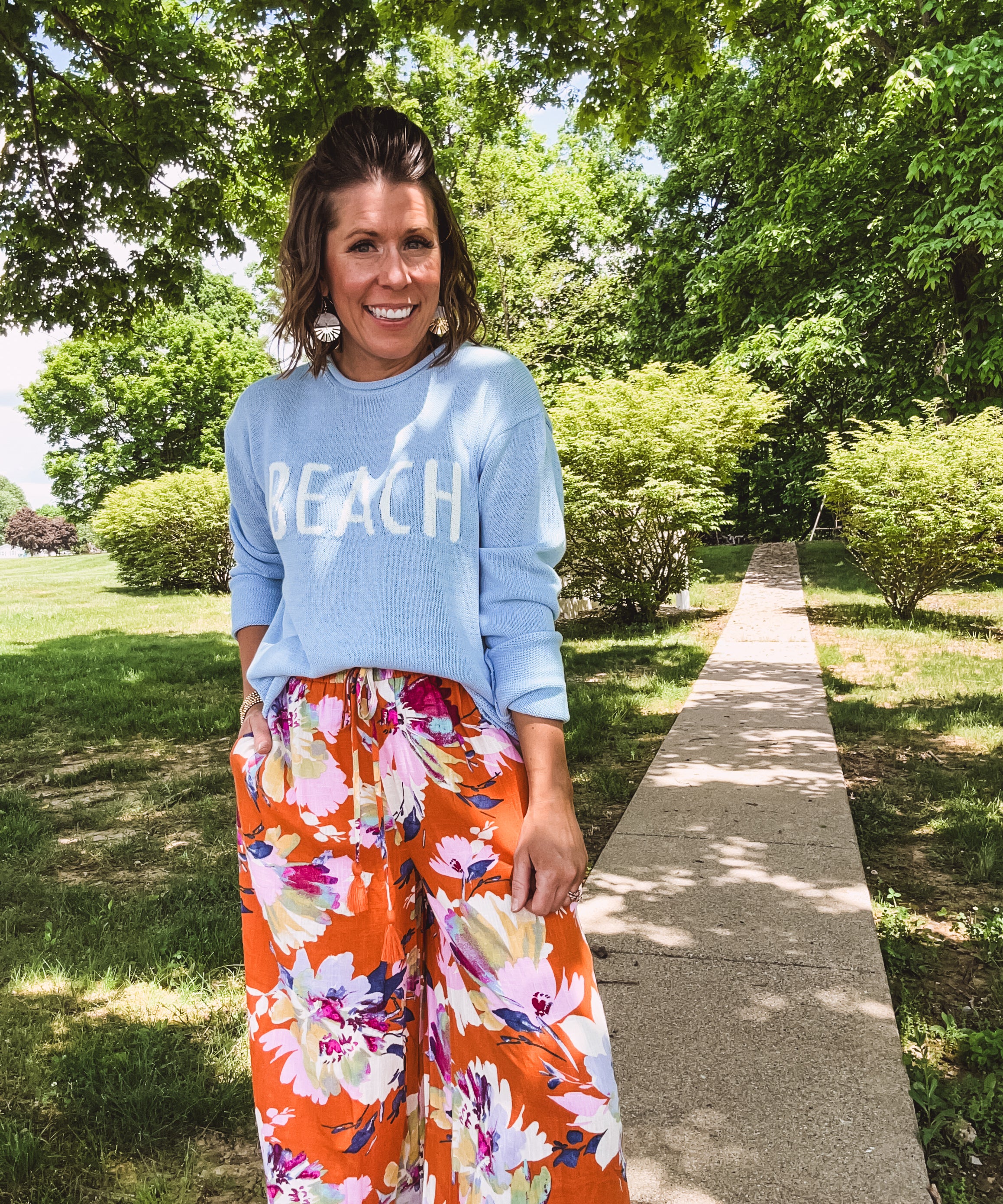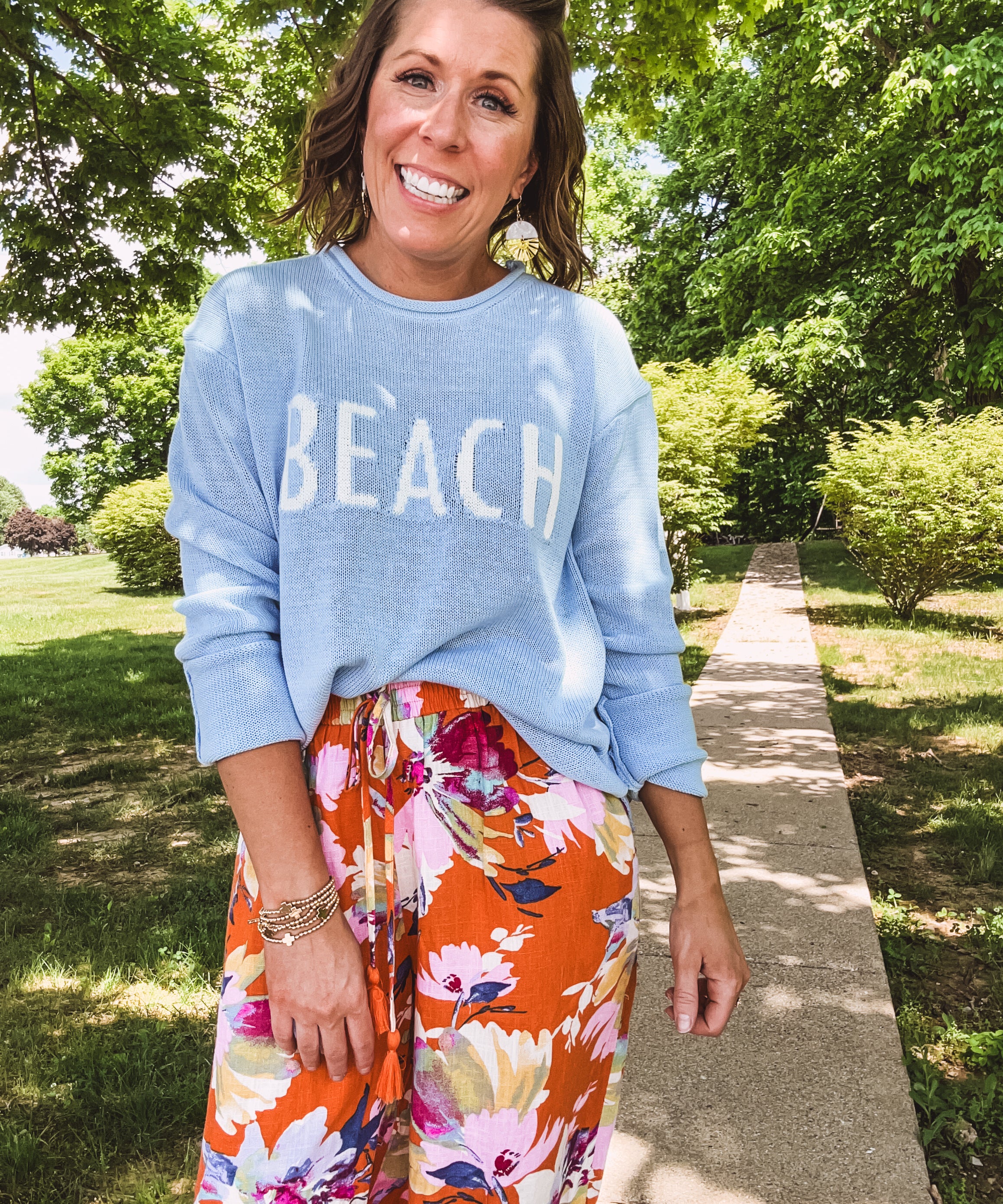 Baby Blue + White BEACH Woven Lightweight Pullover