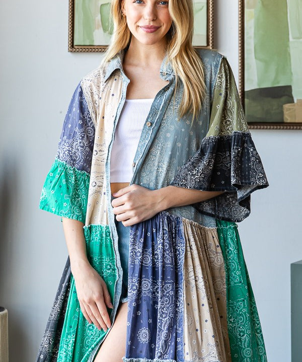 Bandana + Denim Mix Patchwork Flowy Dress