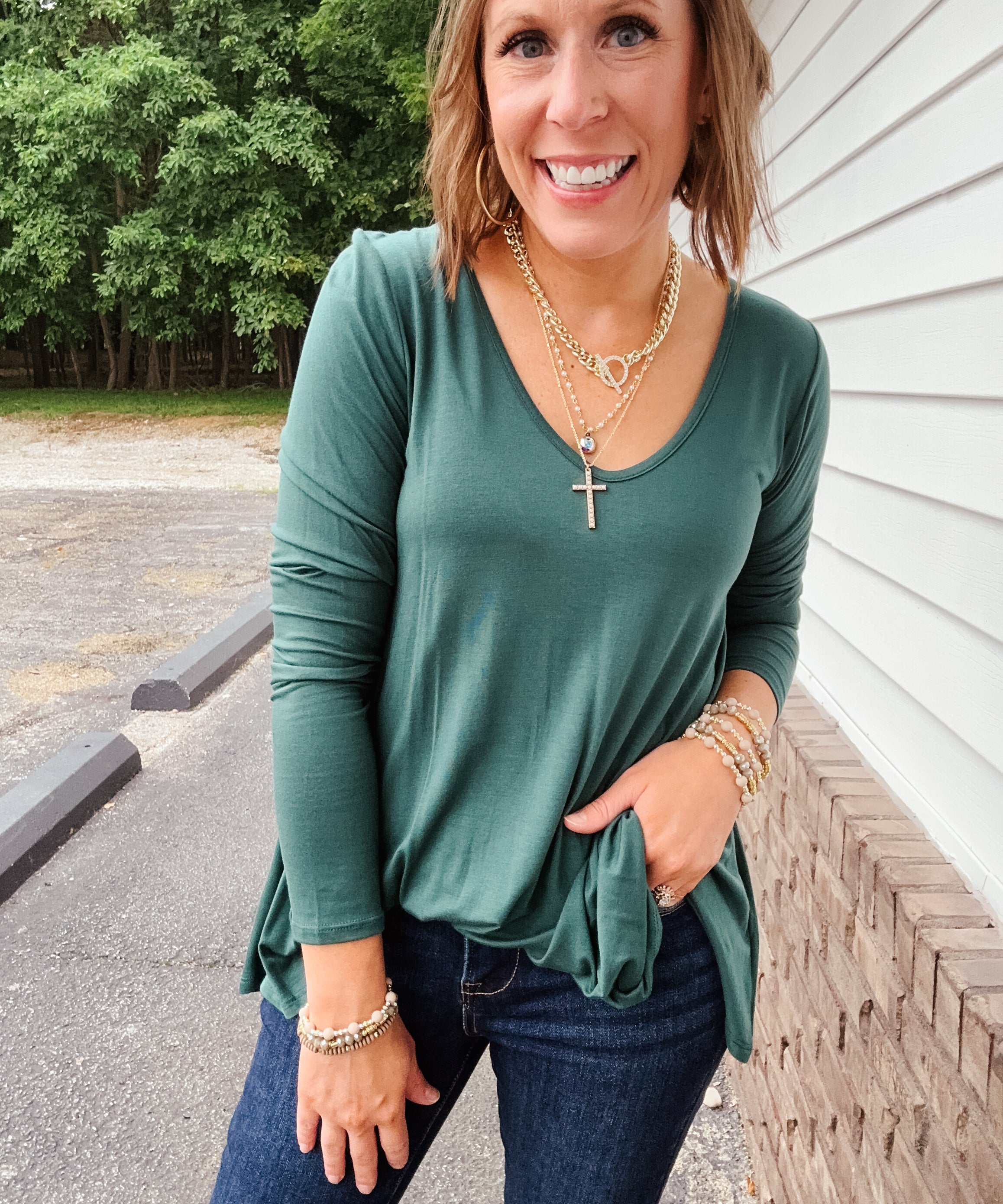 Bamboo L/S V Neck with Pointed Hem