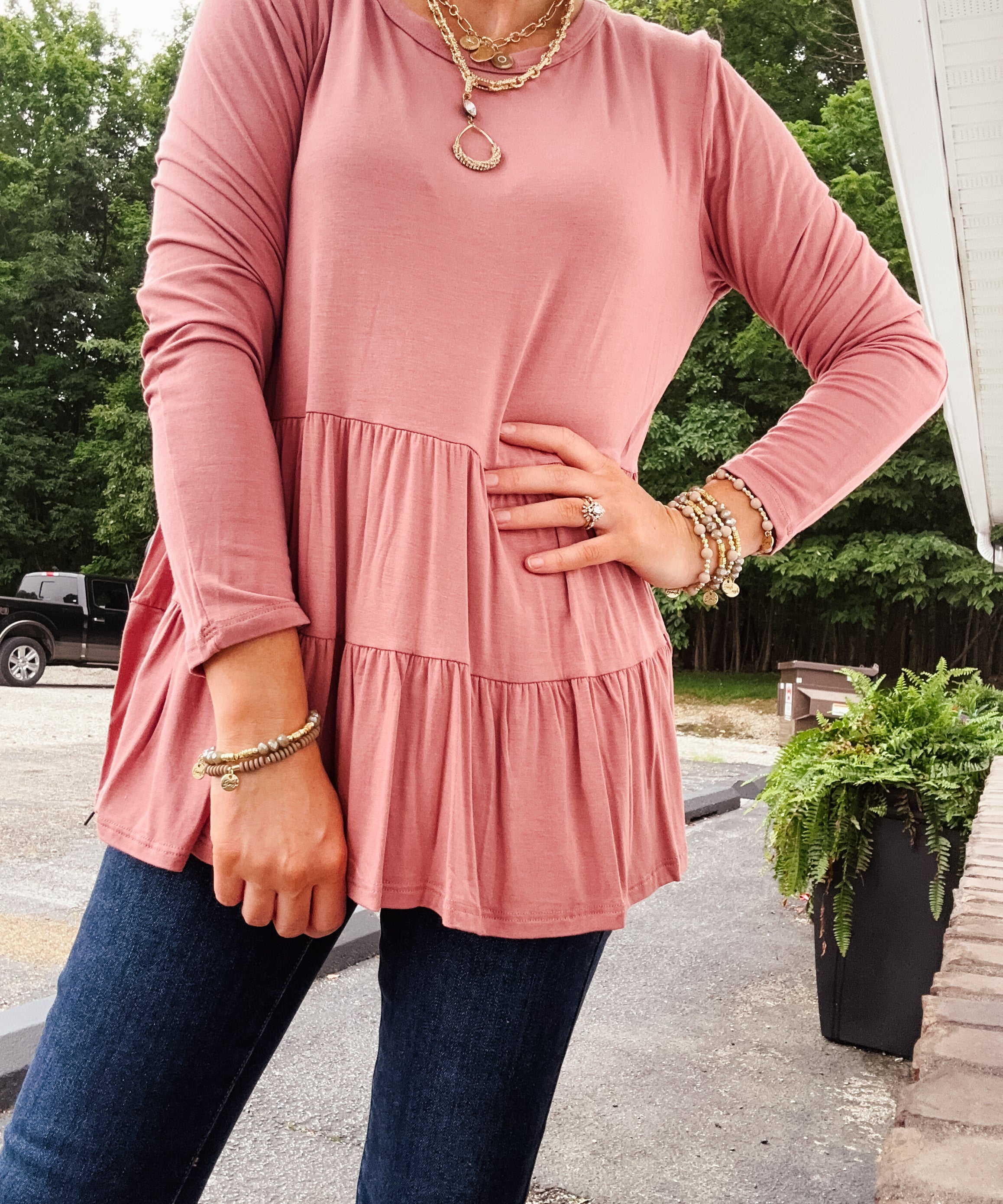 Bamboo Round Neck 2 Tier Babydoll L/S
