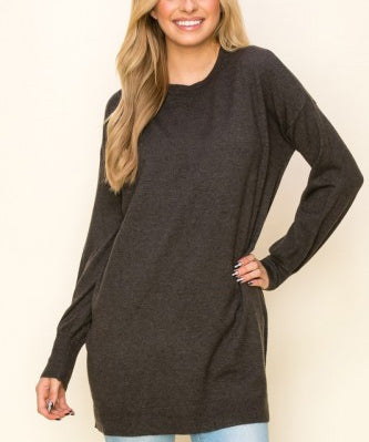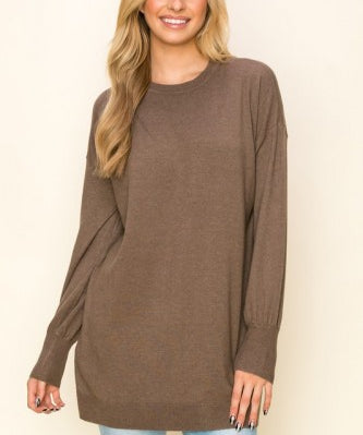 Balloon Sleeve Crew Neck Tunic Sweater