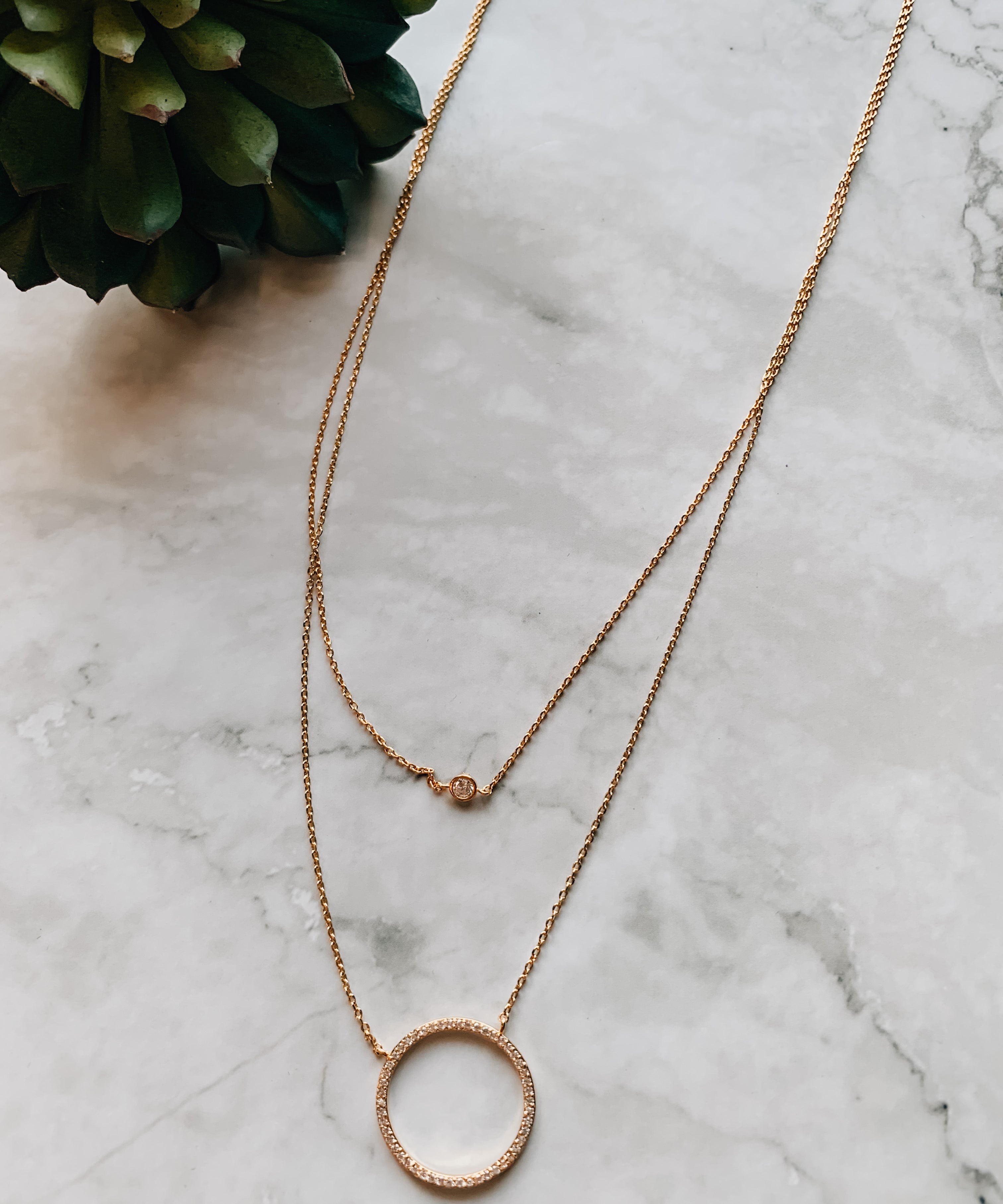 2 Piece Gold Necklace Set + Hammered Metal Ring