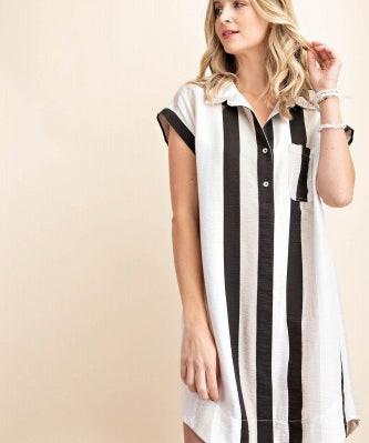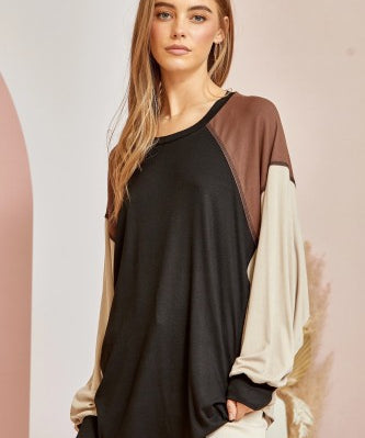 Black + Mocha Stripe Mock Neck Rib Sweater