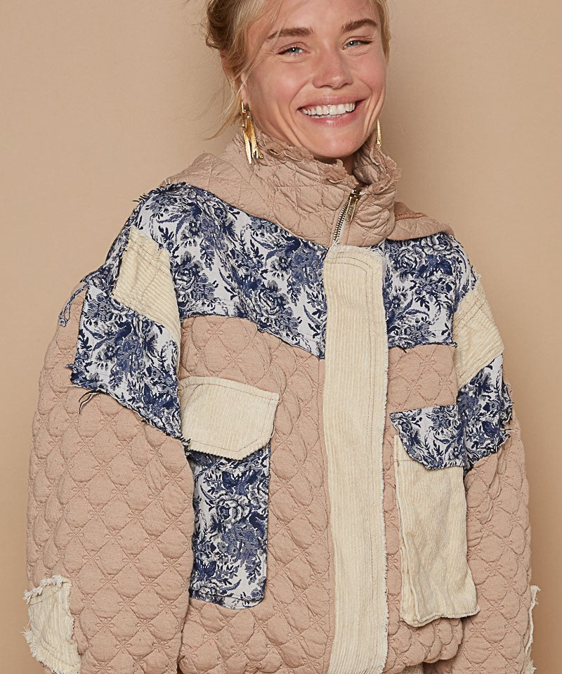 Tan Bubble + Floral Quilted Jacket