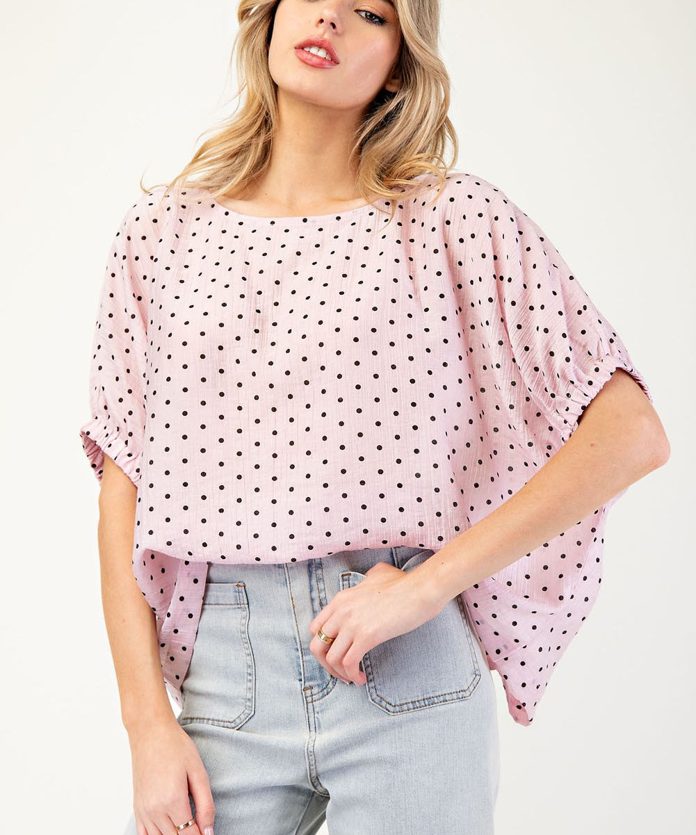 Sweet Pink Polka Dot Printed Top