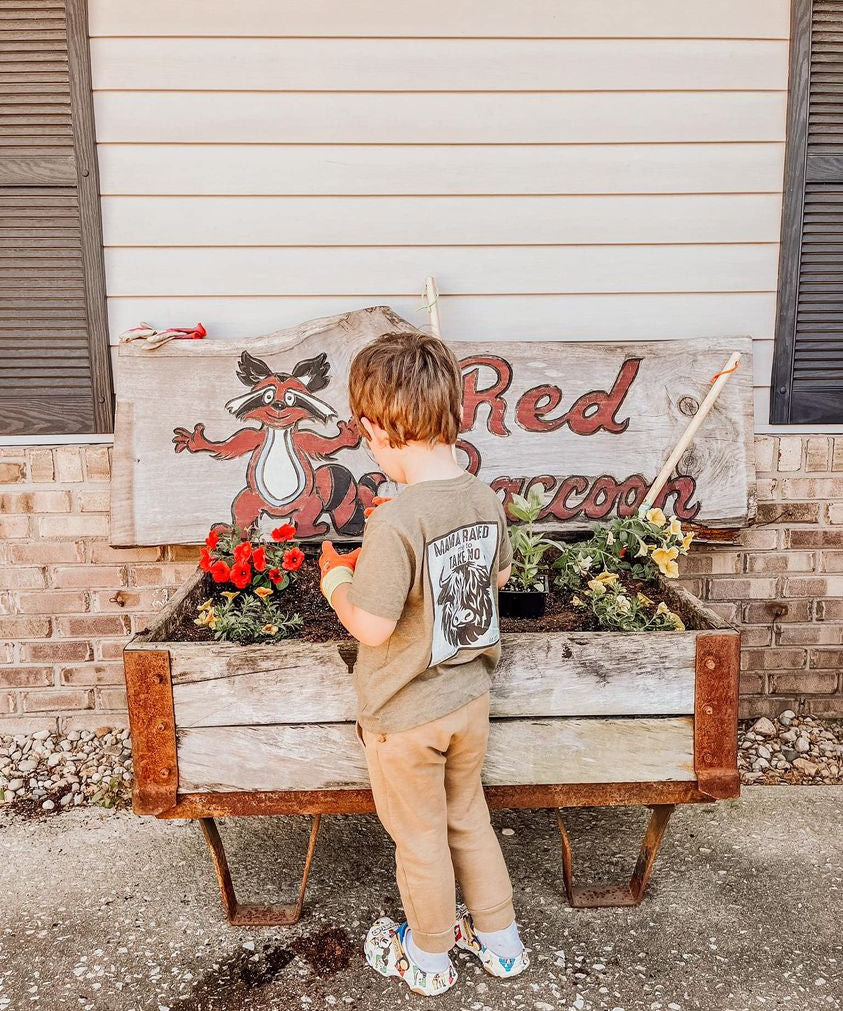 Tan Washed Notch Neck Exposed Seam Pullover