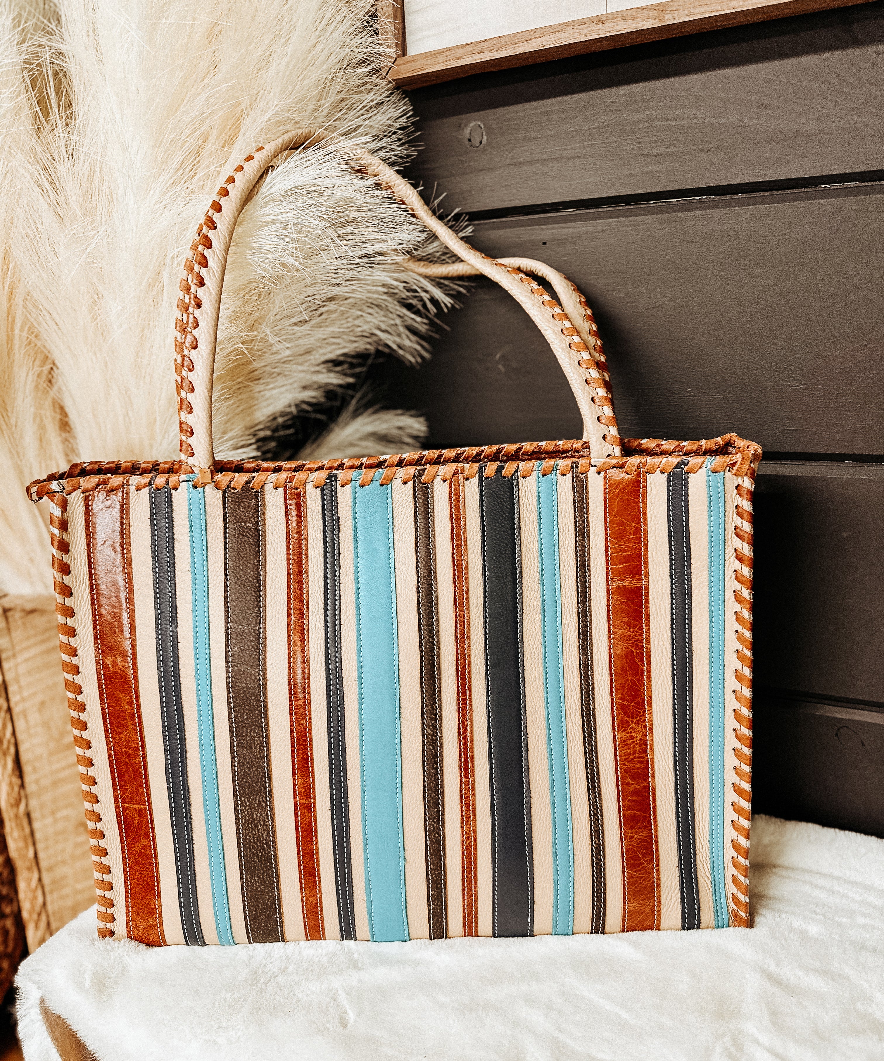 Tall Wedge Box Tote with Stripes on Front