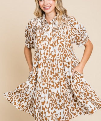 Toffee Retro Print Swing Hem Dress