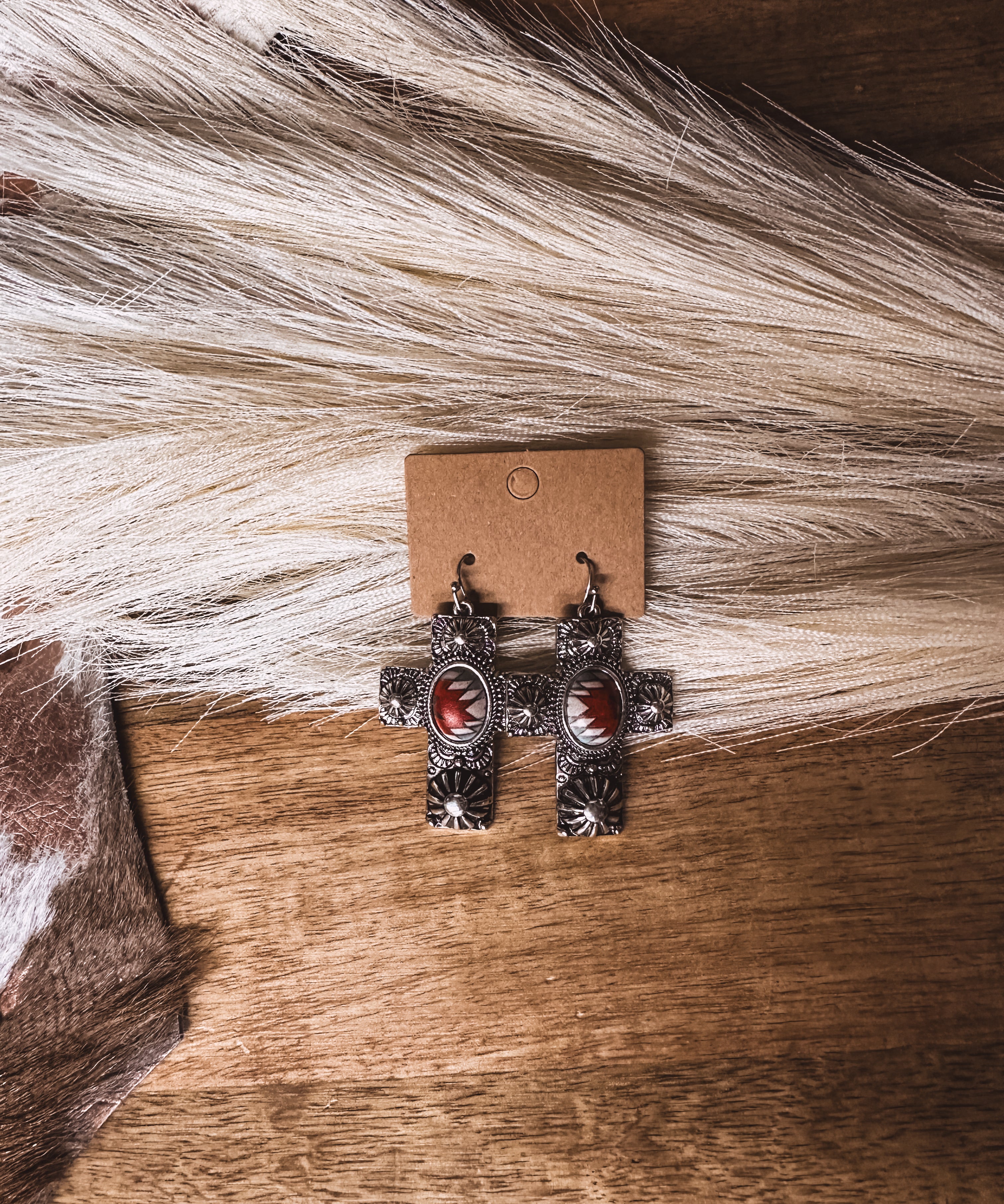 WESTERN CROSS EARRING WTIH AZTEC CENTER