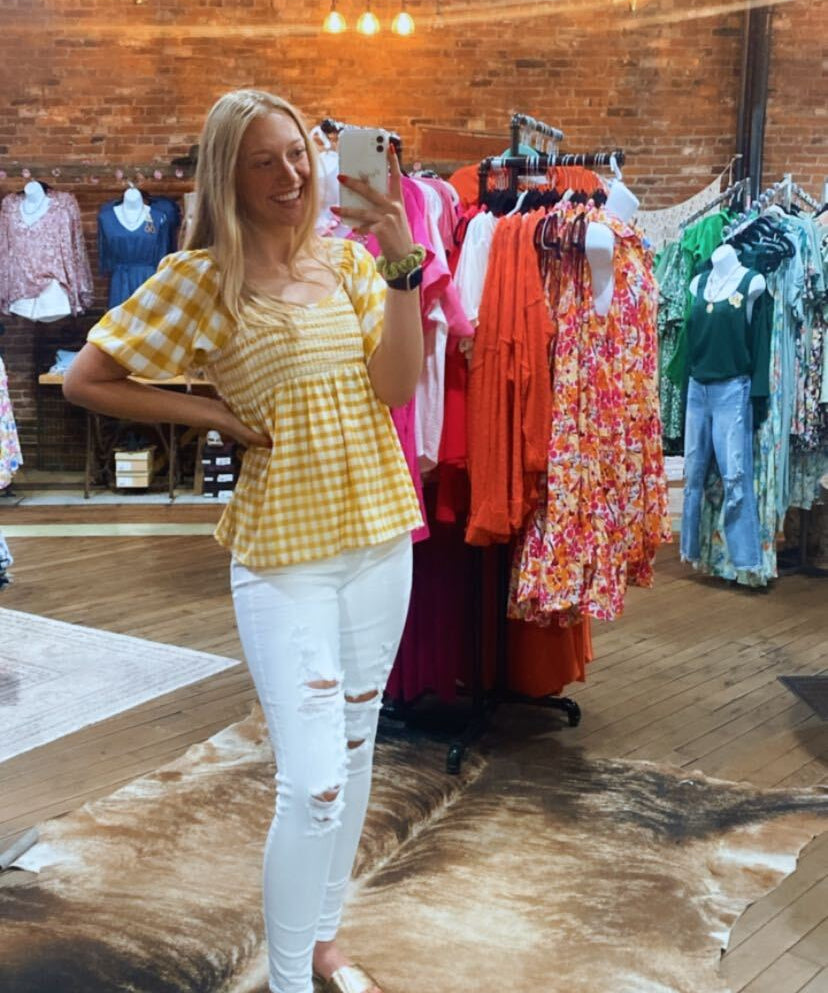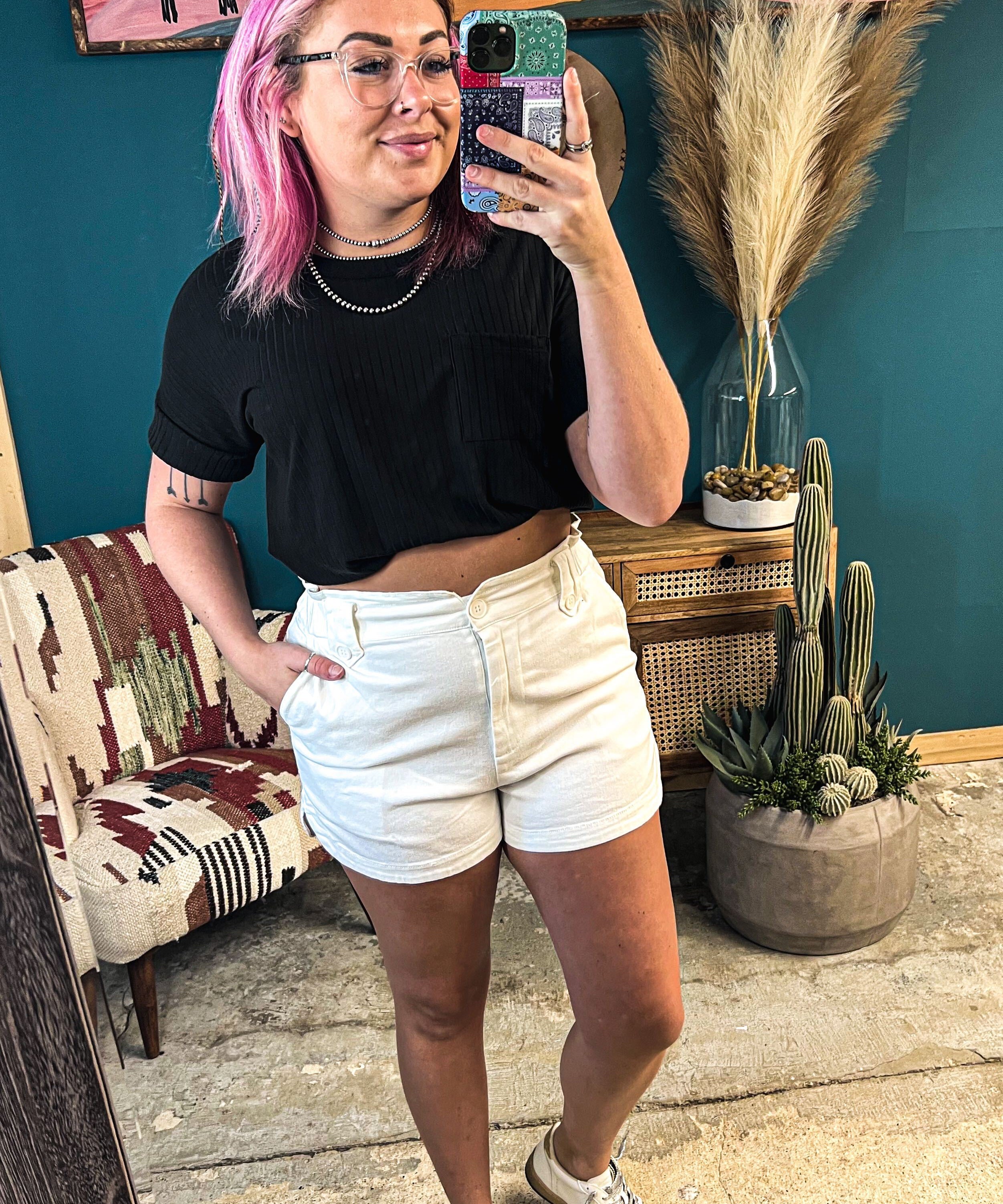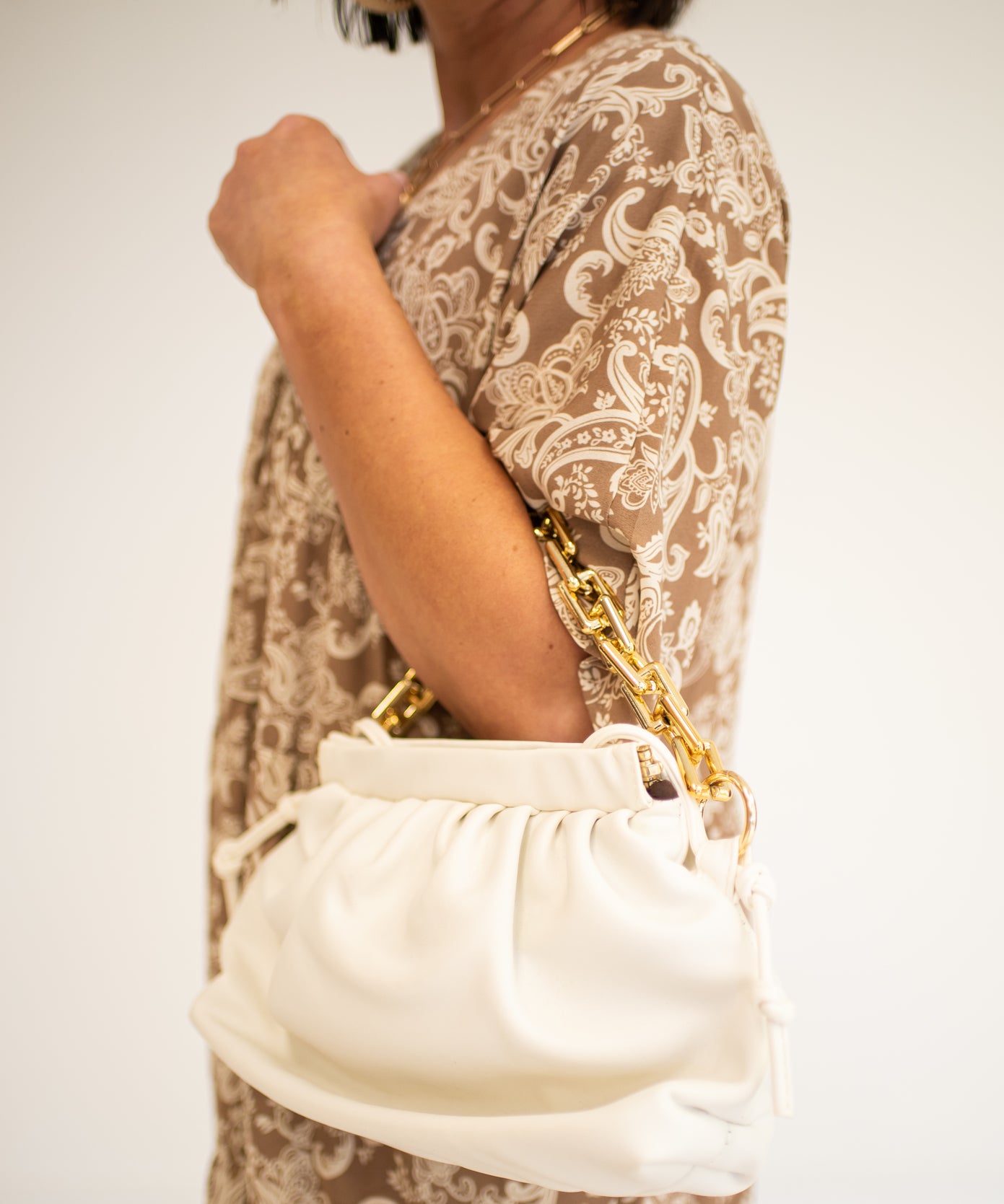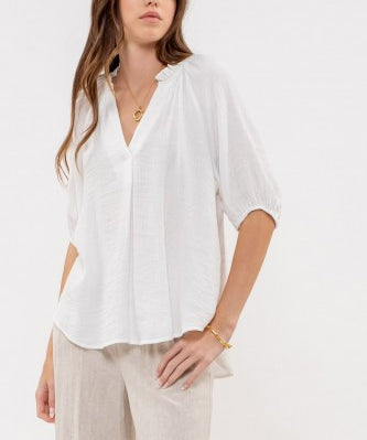 White Linen Like V Neck Blouse with Elastic Sleeve