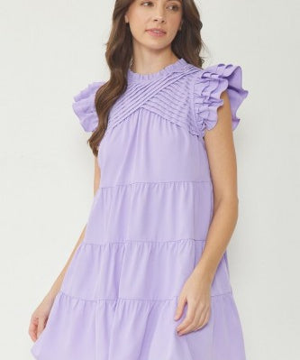 White Pintuck Yoke Tiered Flutter Sleeve Dress