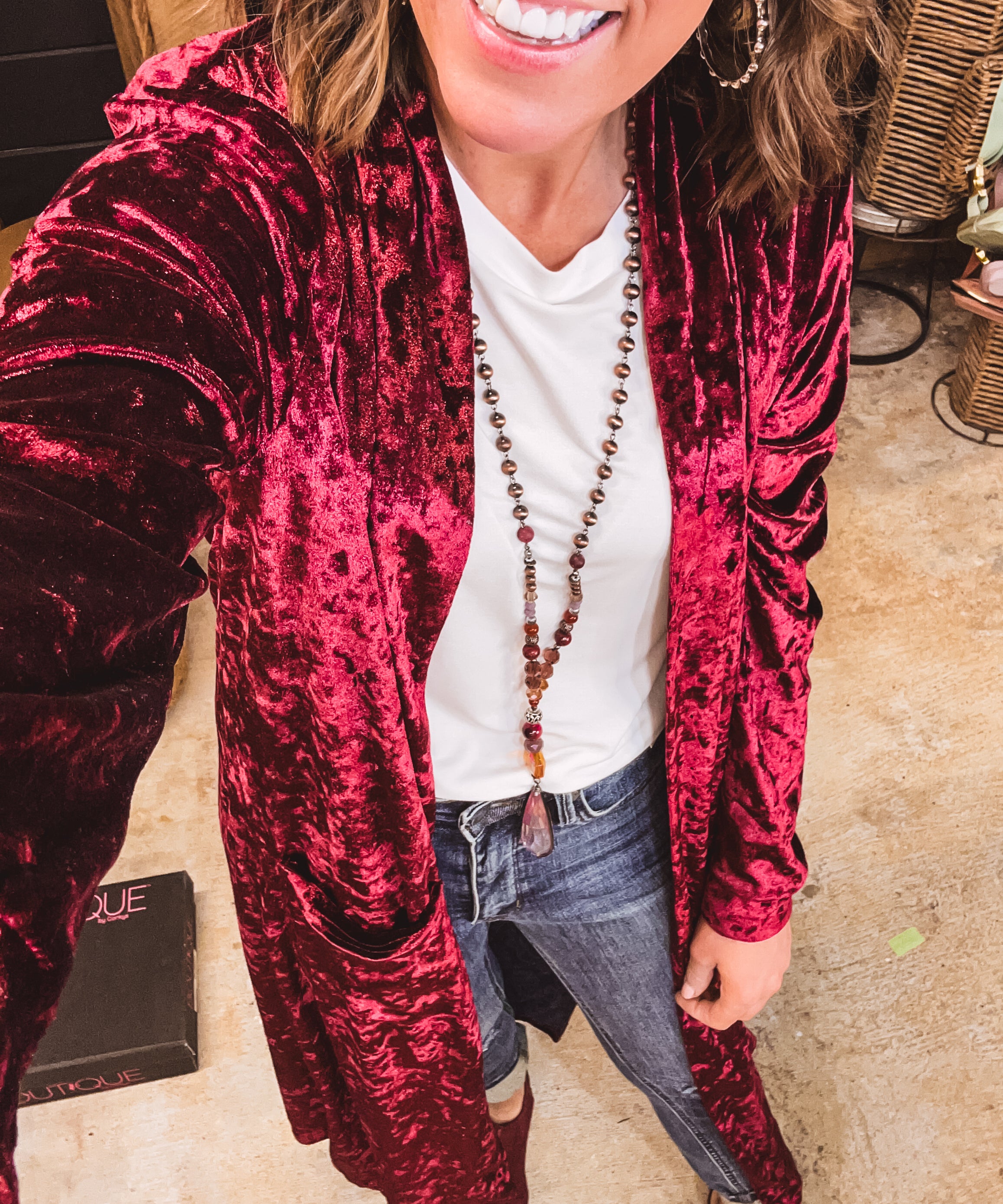 Wine Montecito Cardigan with Rib Hem & Pockets