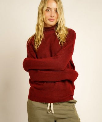 Wine Turtleneck Drop Shoulder Woven Sweater