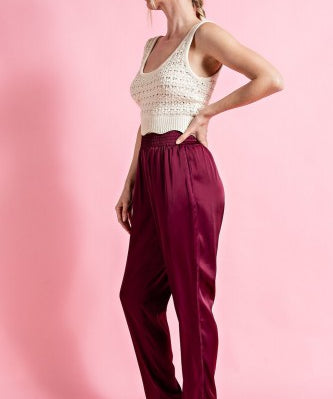 Wine Satin Cowl Neck Cap Sleeve Blouse