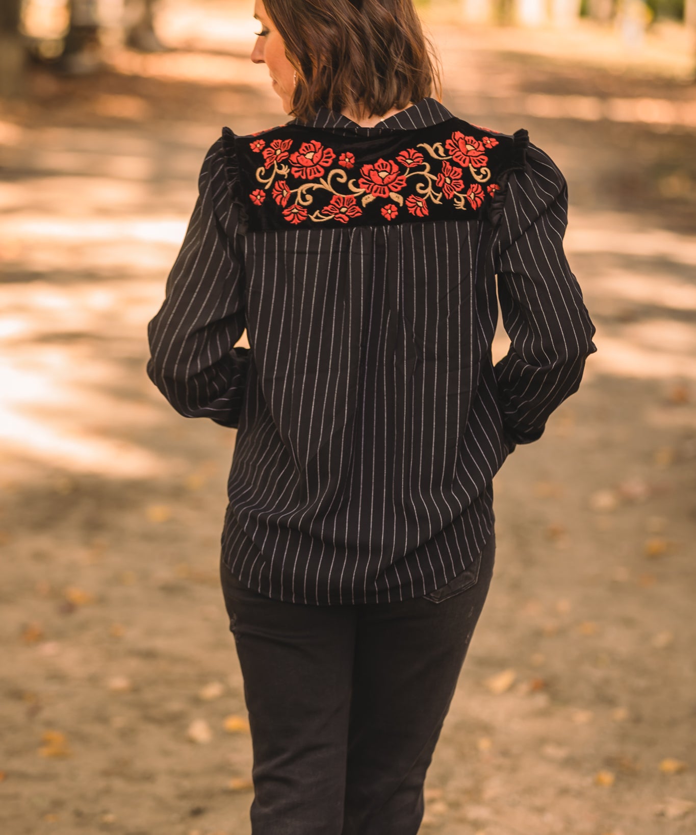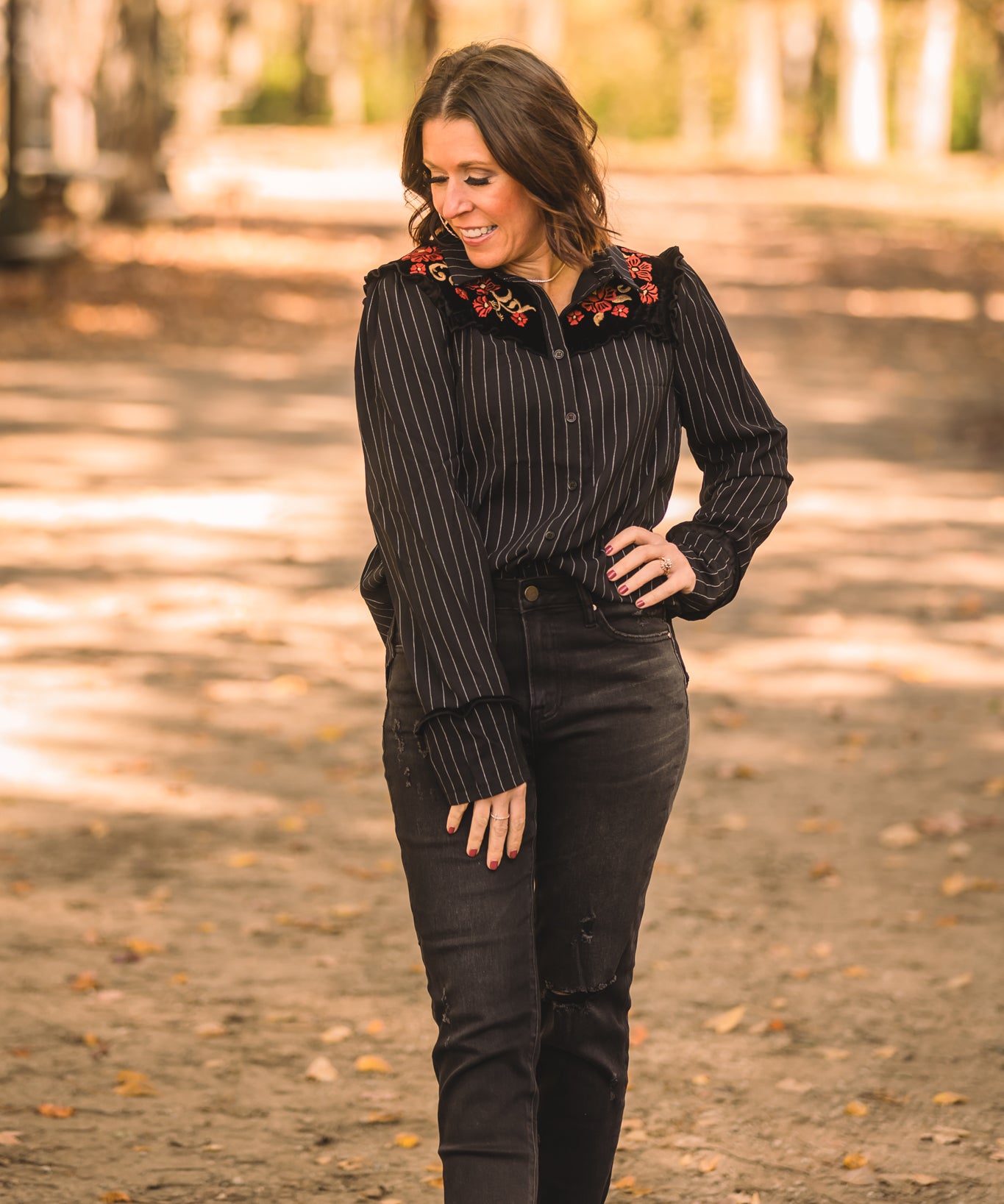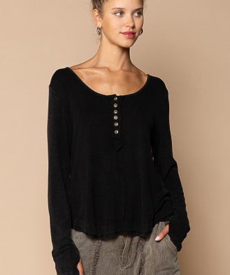 BLACK LONG SLEEVE SHIRT WITH BASEBALL BOWS