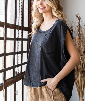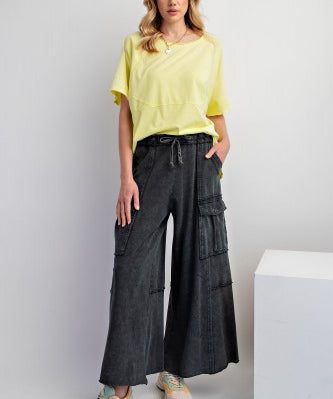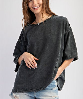 Black Mineral Wash Gauze Tie Back Jumpsuit
