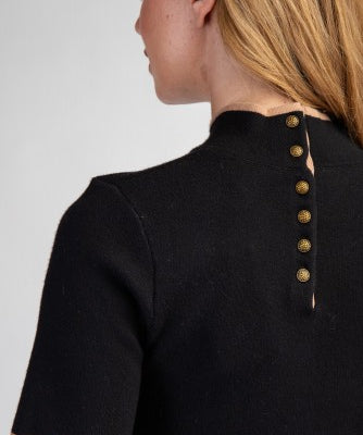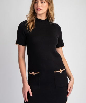 Black Mock Neck Sweater Dress with Contrast Faux Pocket Stitch