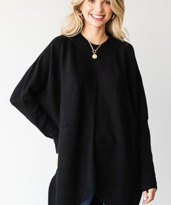 Black Oversized Solid Ribbed Dolman Sweater Top