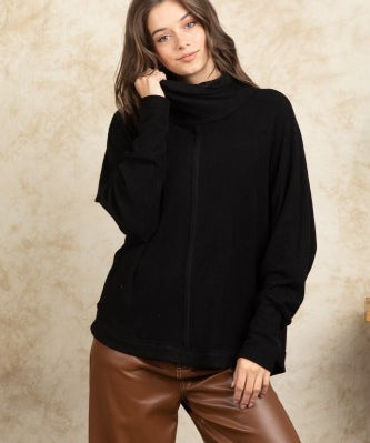Black Mock Neck Dolman Sleeve Front Seam Pullover