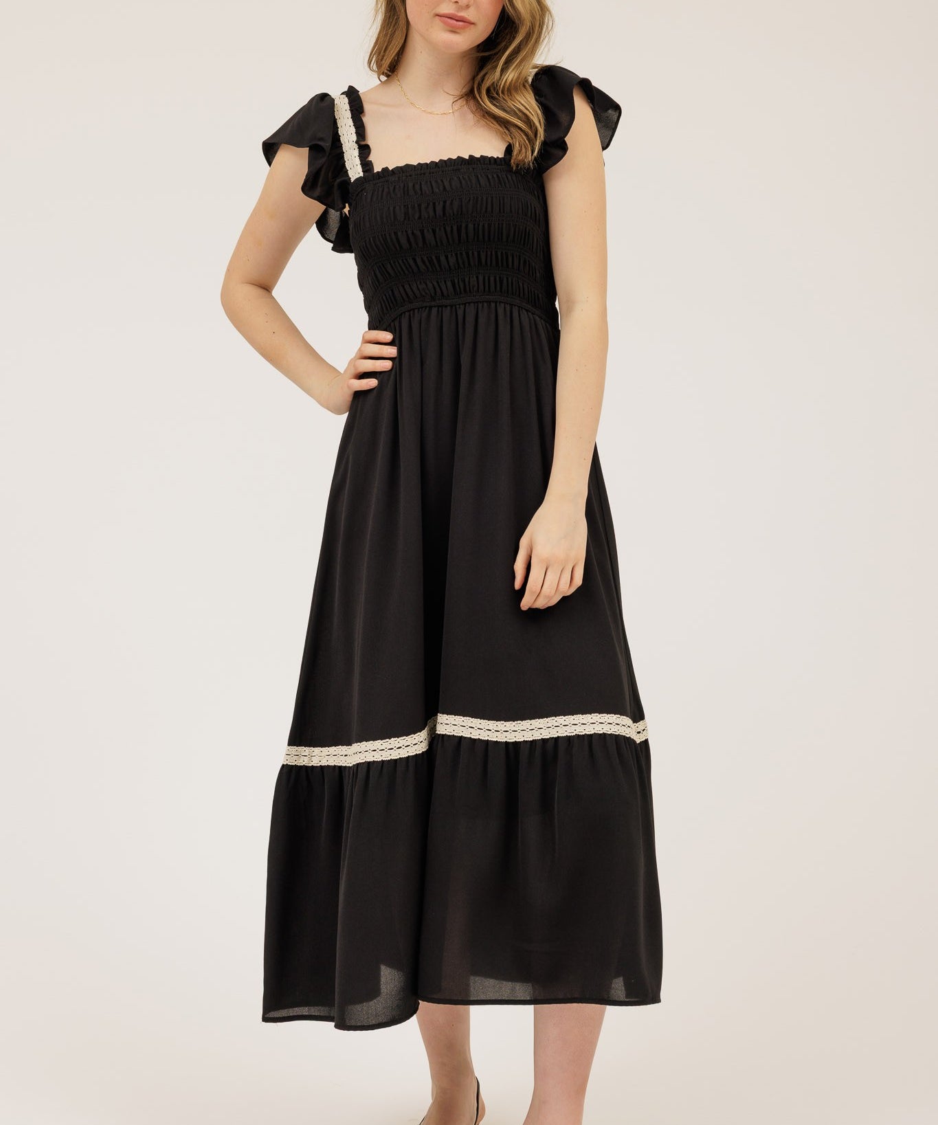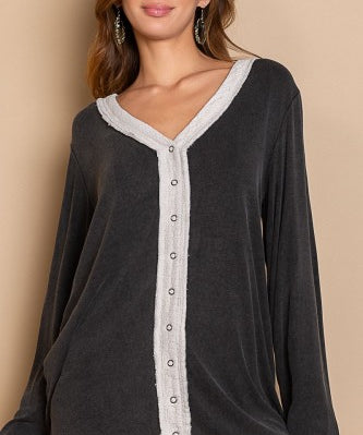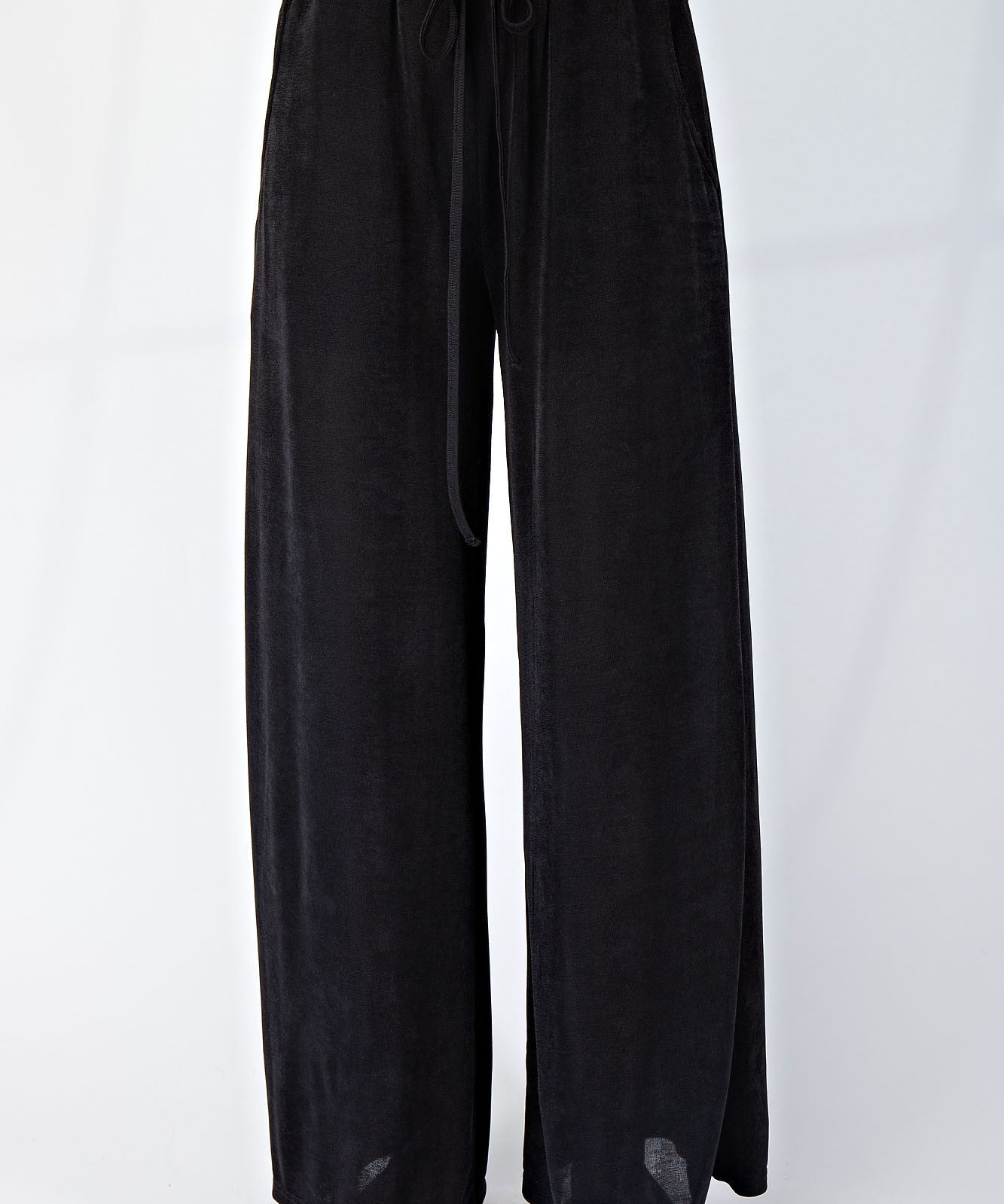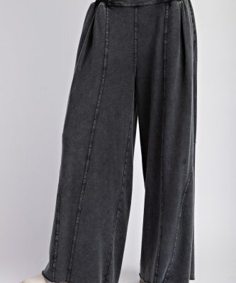 Black Smock Waist Mineral Wash Terry Knit Pant