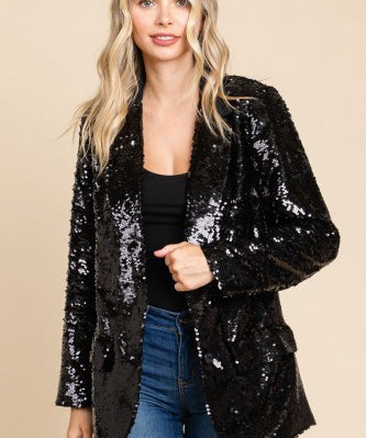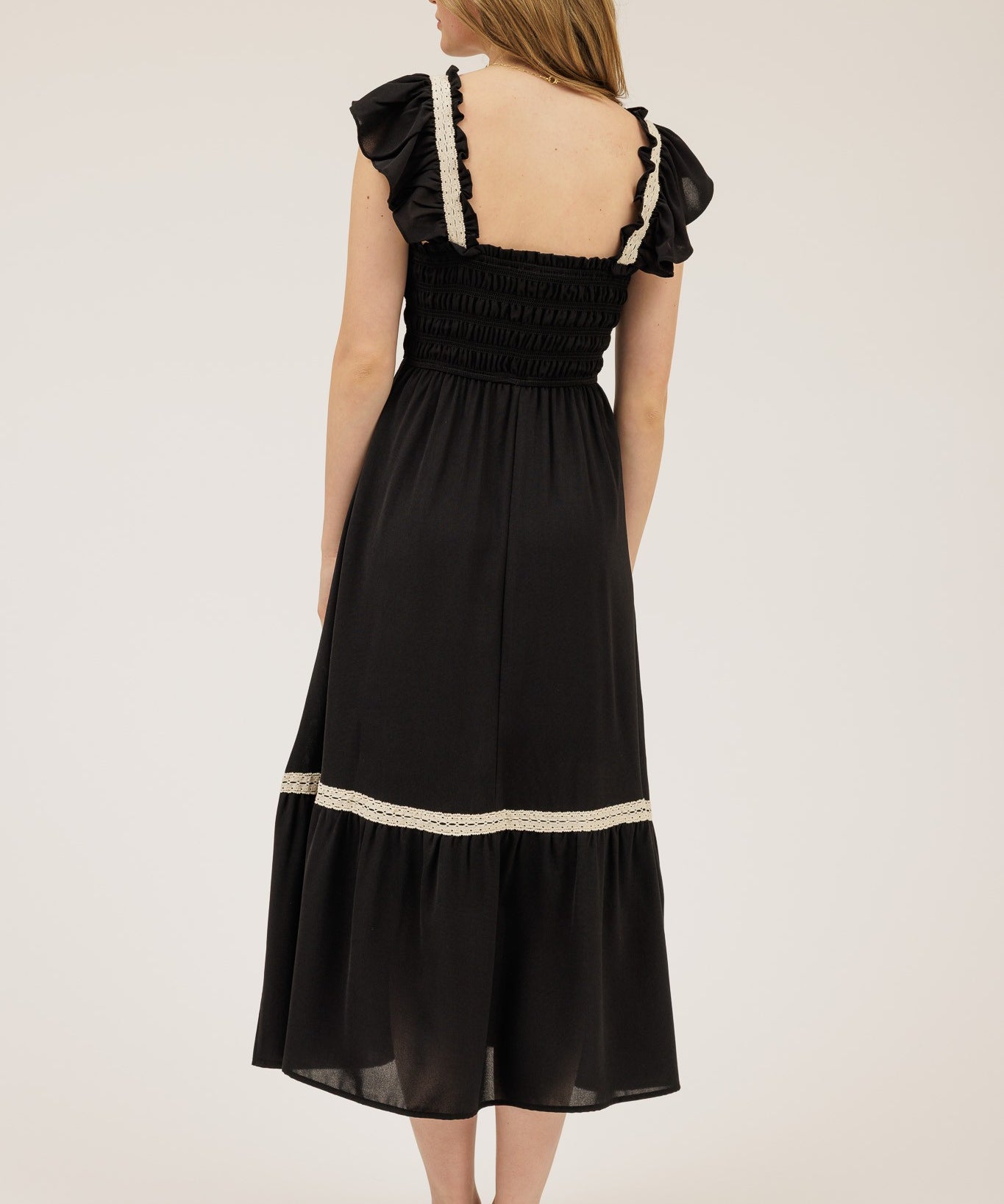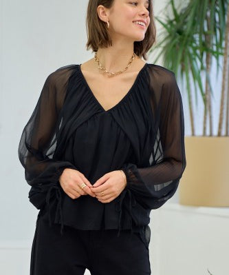 Black Shirred Blouse with Sheer Balloon Sleeve
