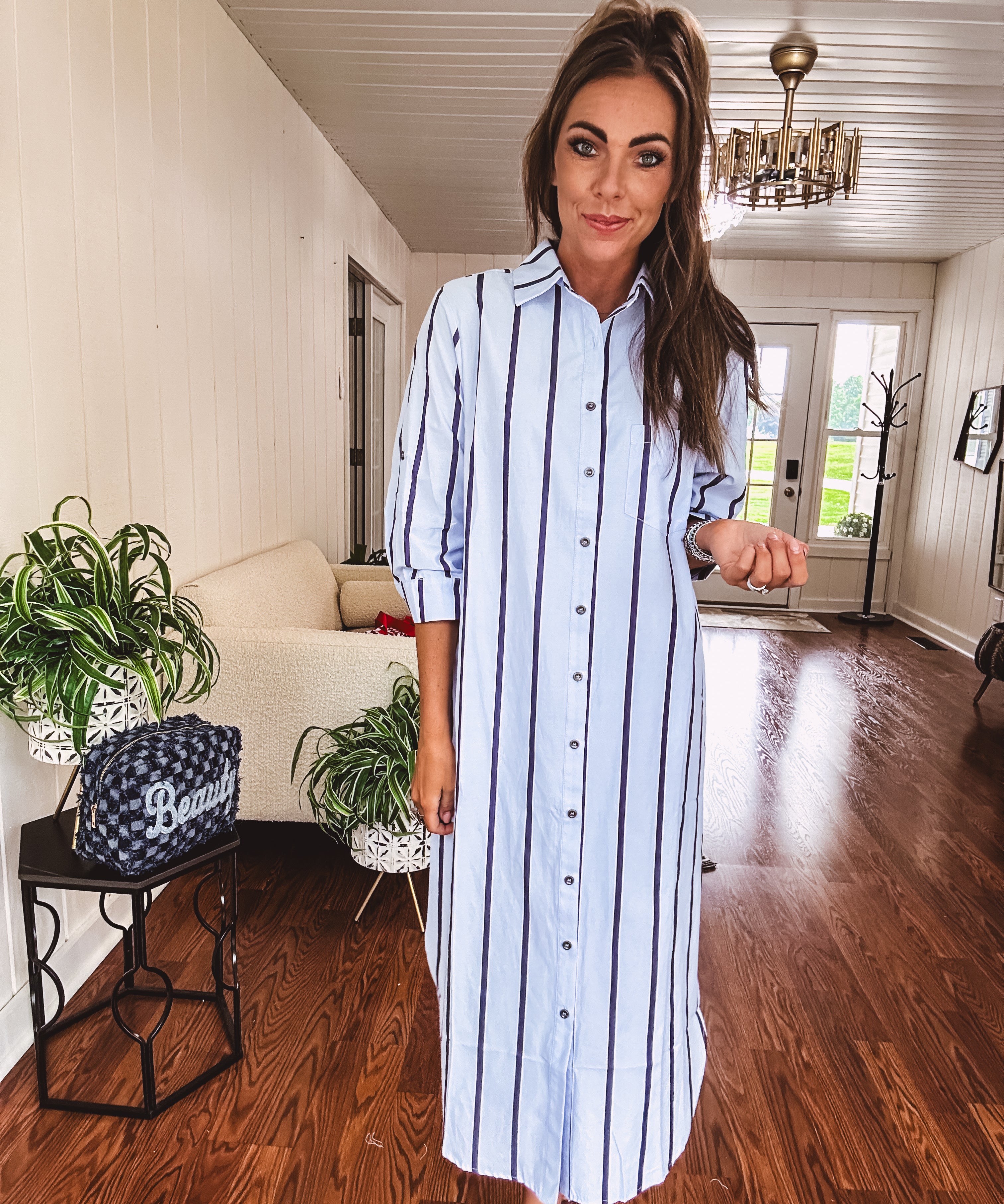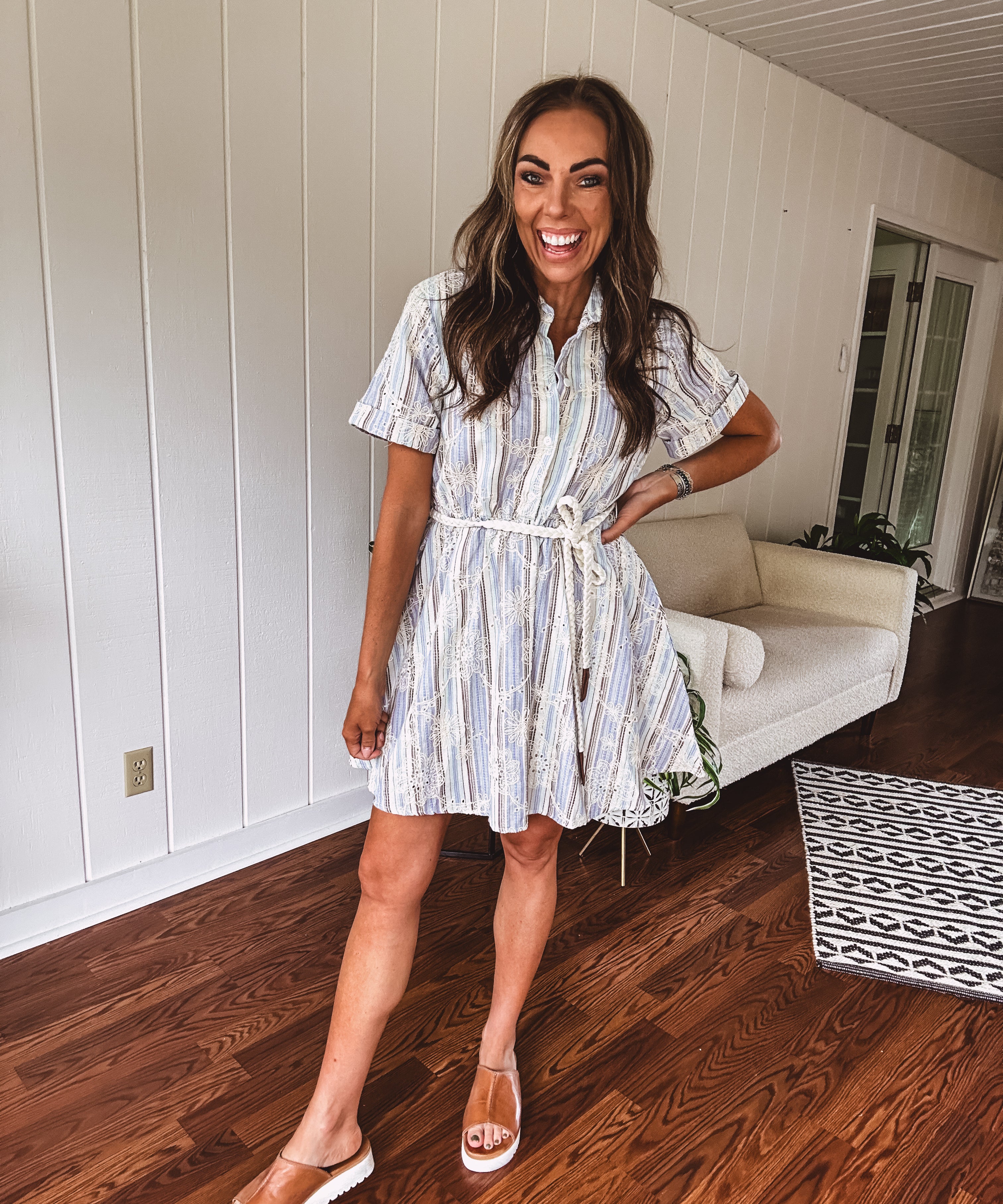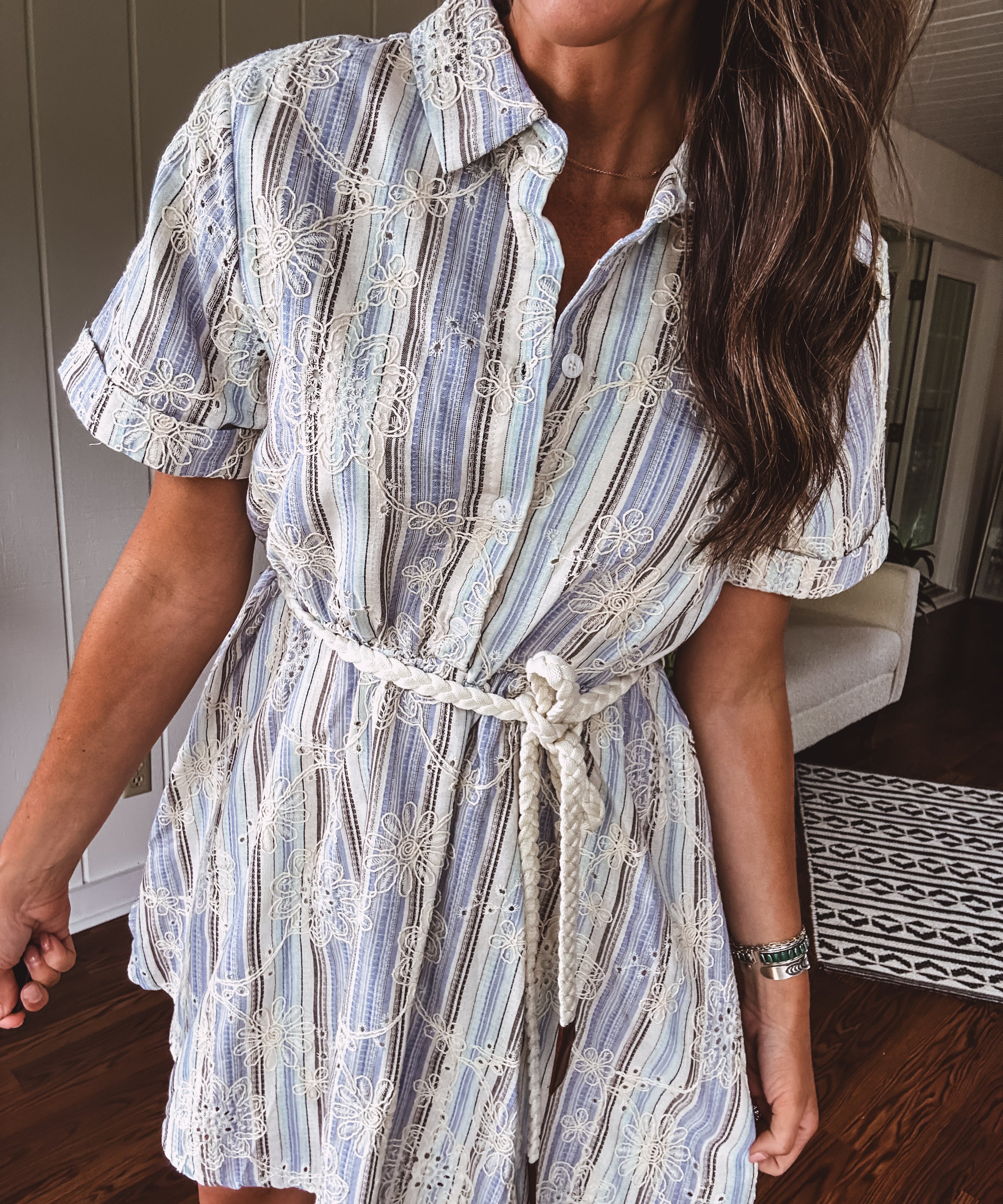 Blue Denim Stripe Mix Embroidered Twill Dress