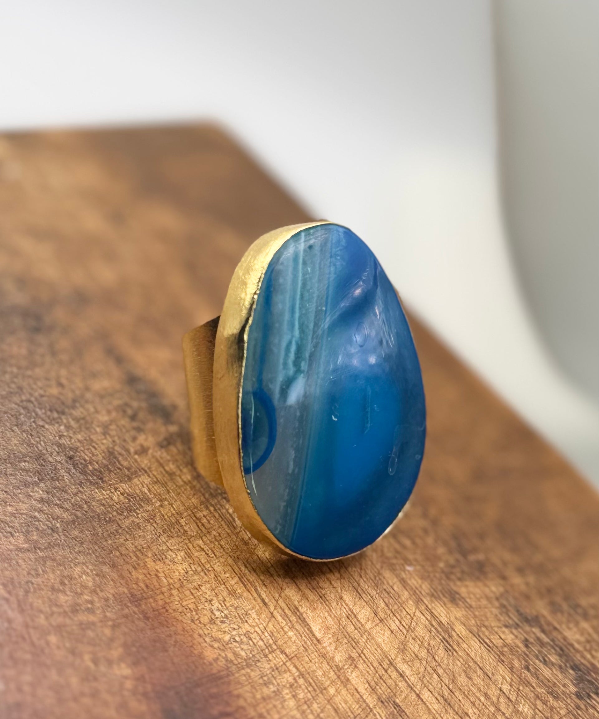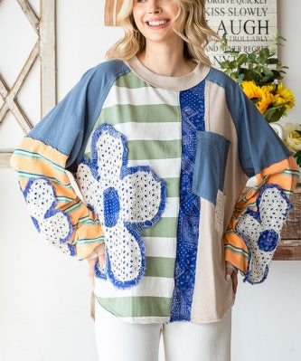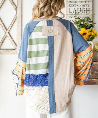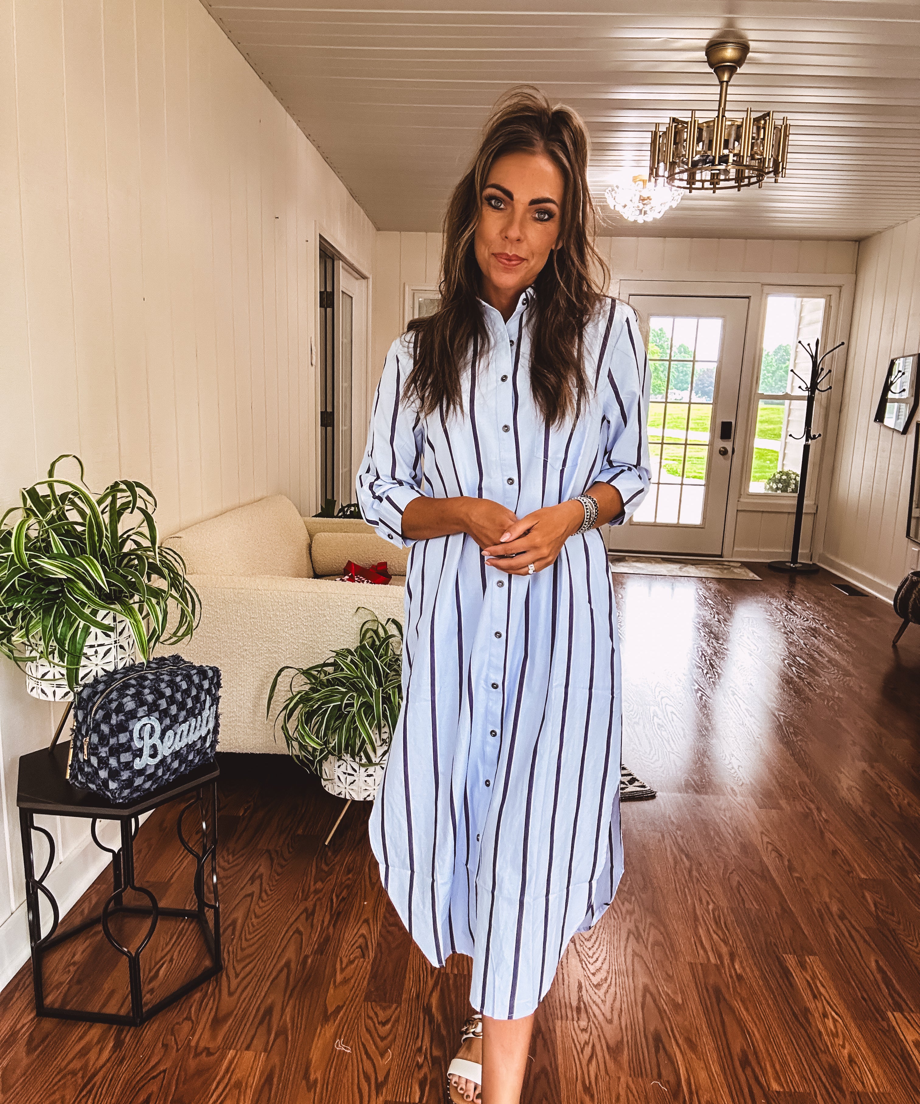 Blue Denim Stripe Mix Embroidered Twill Dress