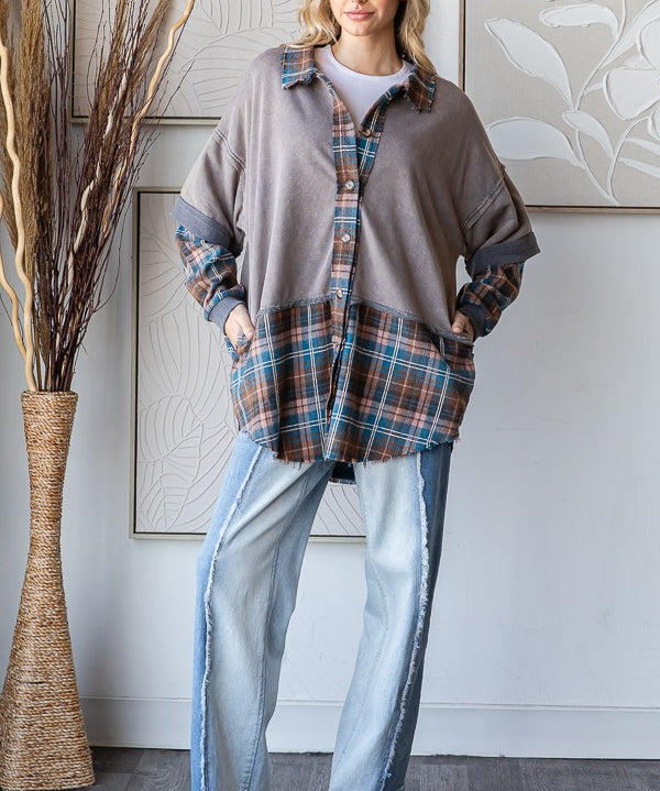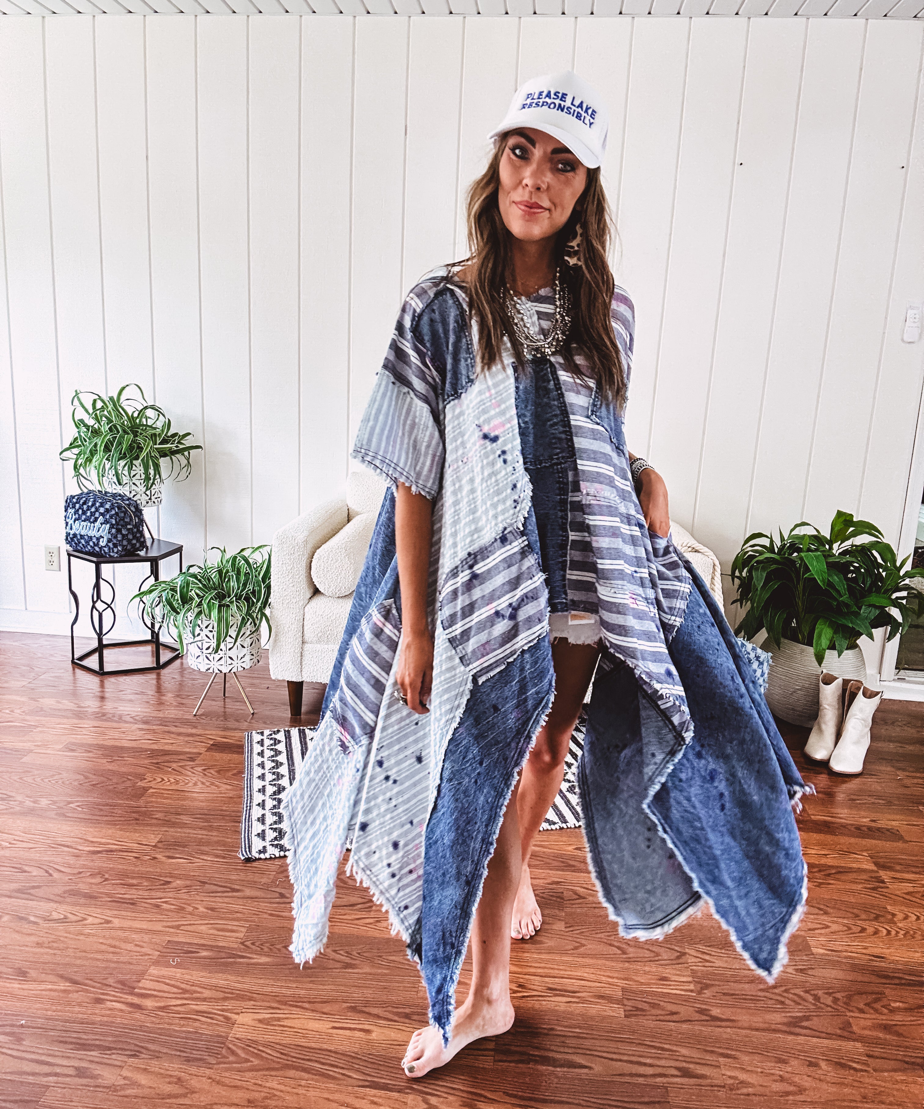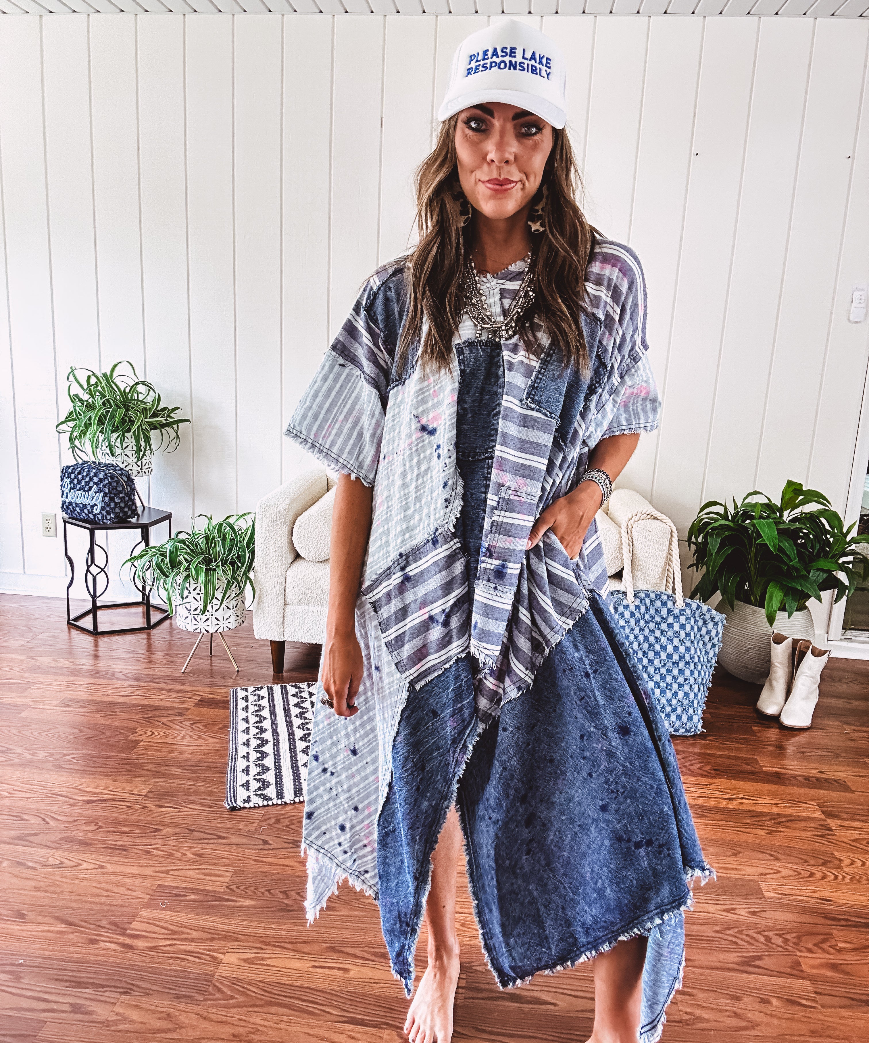 Blue Mineral Wash Cotton Gauze Romper with Smock Top
