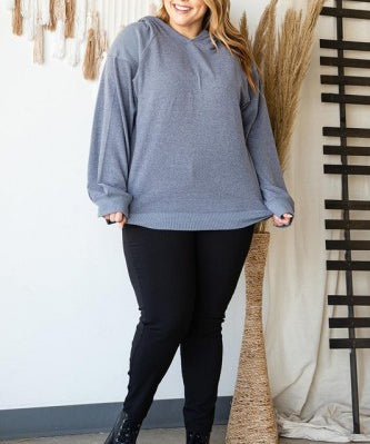 Blue Hacci Brushed Hooded Pullover with Rib Detail