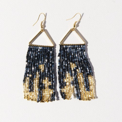 BLUE GOLD IRIDESCENT FRINGE ON TRIANGLE HANGER EARRINGS