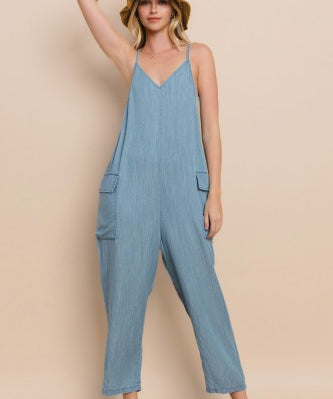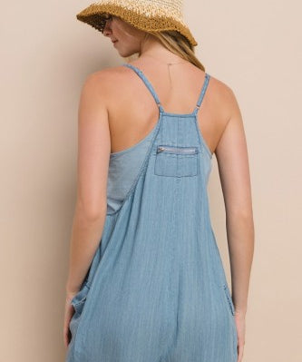Acid Wash Chambray Oversize Jumpsuit
