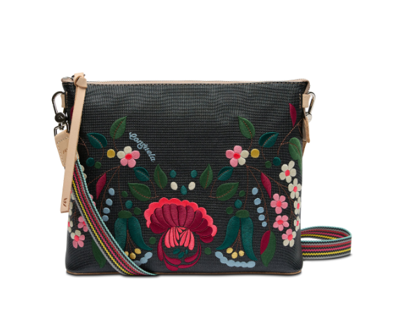 Meet your new go-everywhere companion! The Ava Downtown Crossbody pairs a striking ebony woven exterior adorned with iconic floral embroidery with practical everyday functionality. Slip your essentials into the spacious interior, complete with a convenient slide pocket and credit card slots, then secure everything with the smooth zipper closure. The detachable and adjustable woven strap lets you customize your carry, while natural leather trim adds a touch of understated elegance. Whether you're dashing through the city or settling in for the day, this textured beauty has room for all your must-haves.