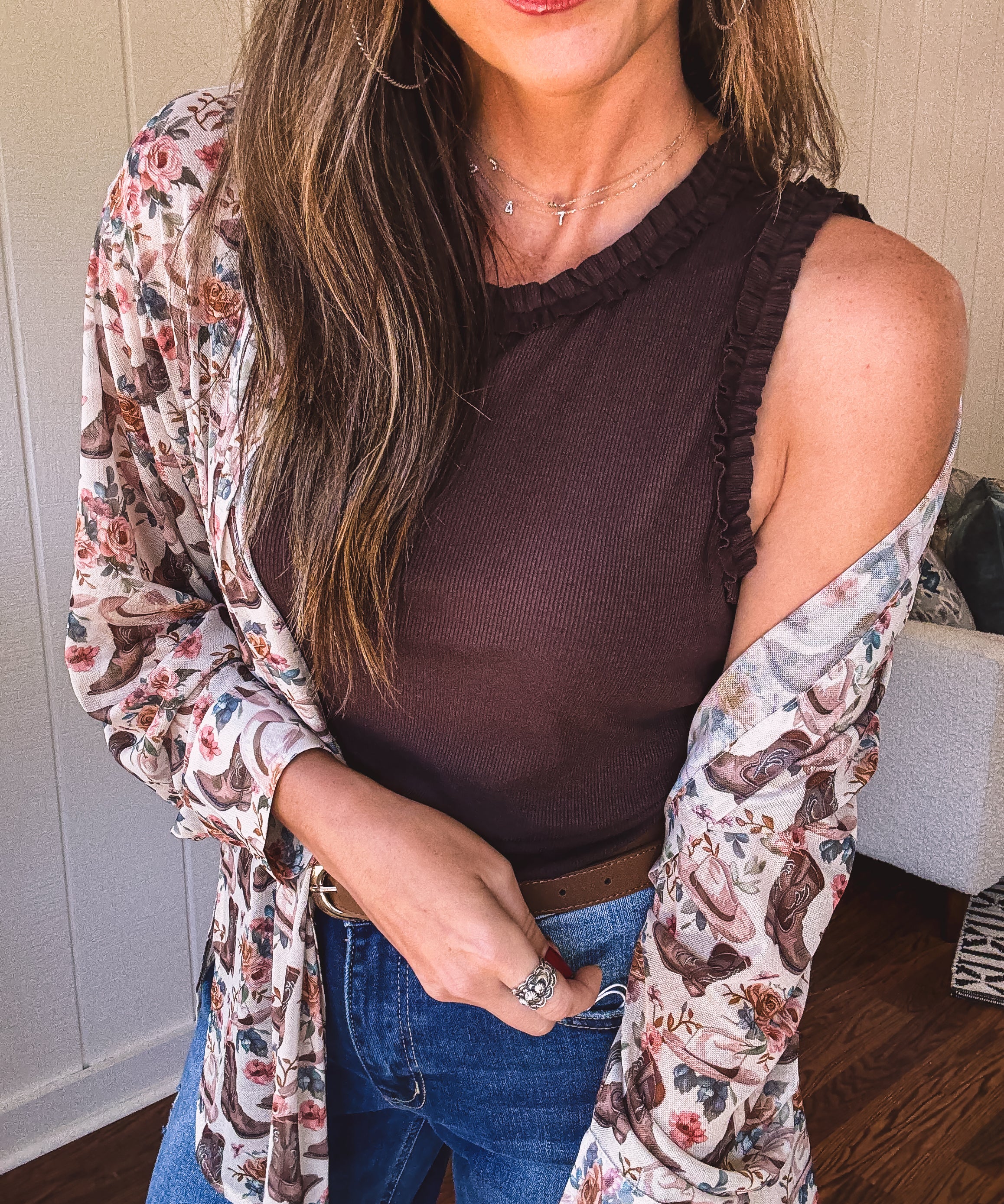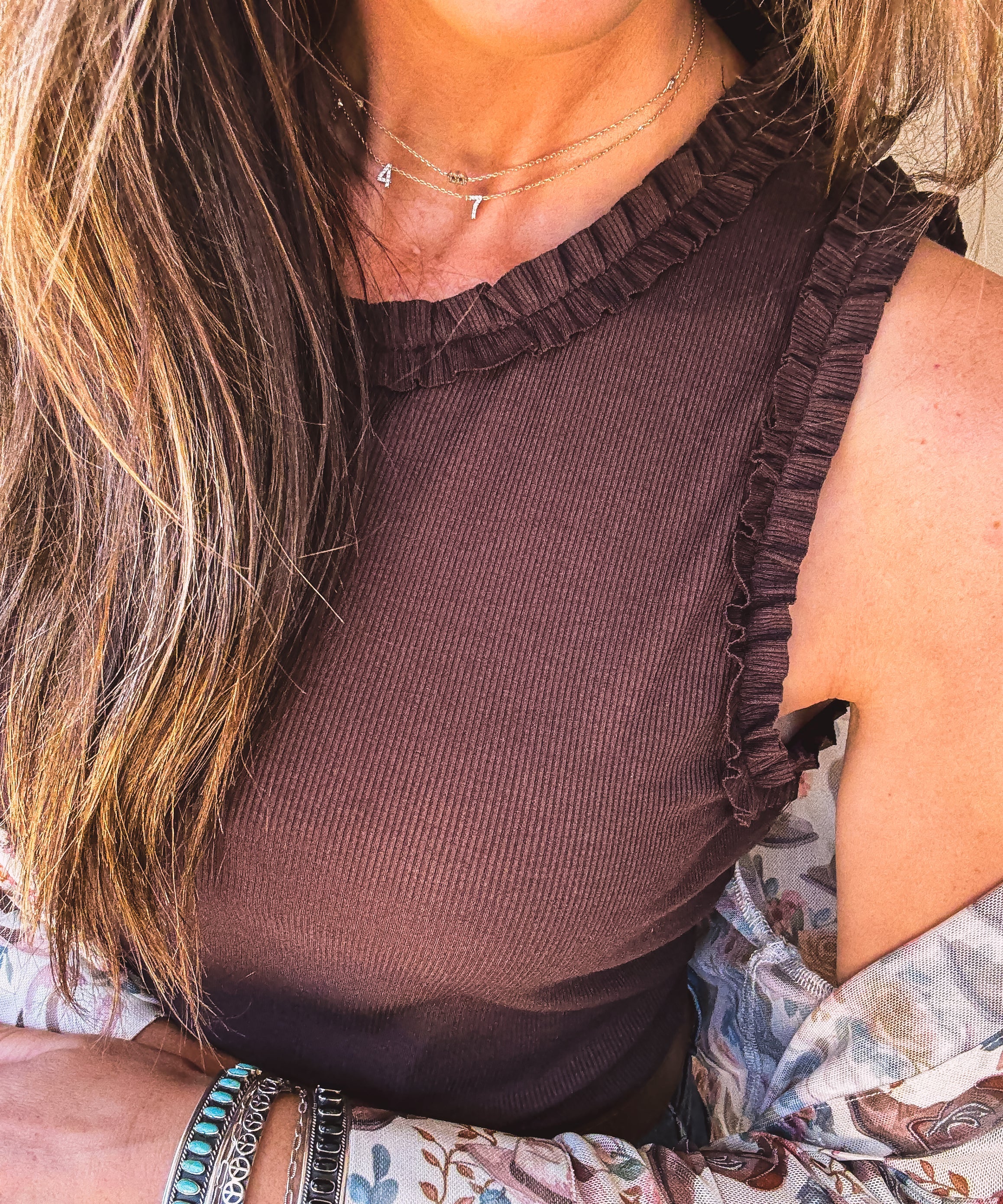 Espresso Rib Tank with Ruffle Detail