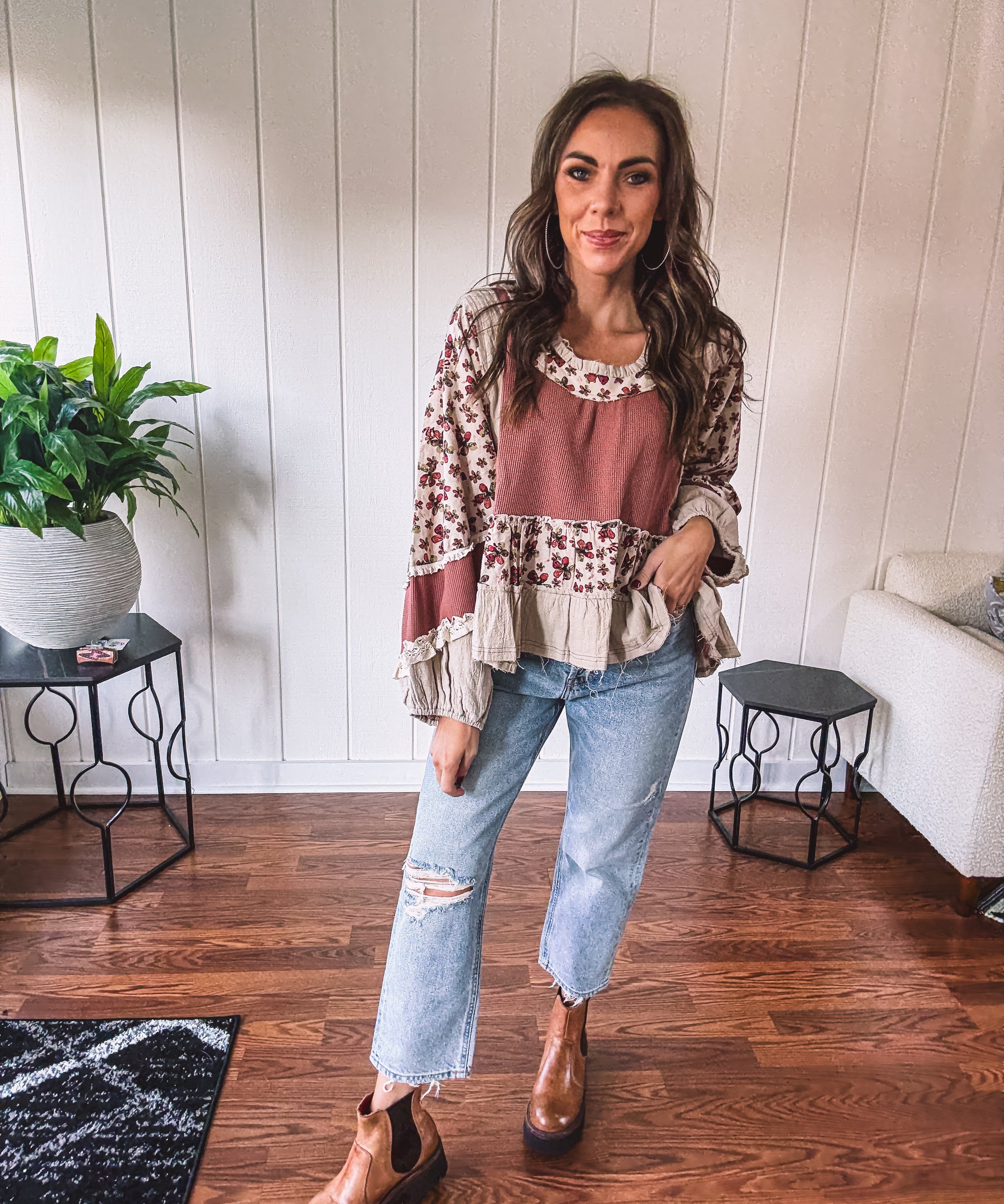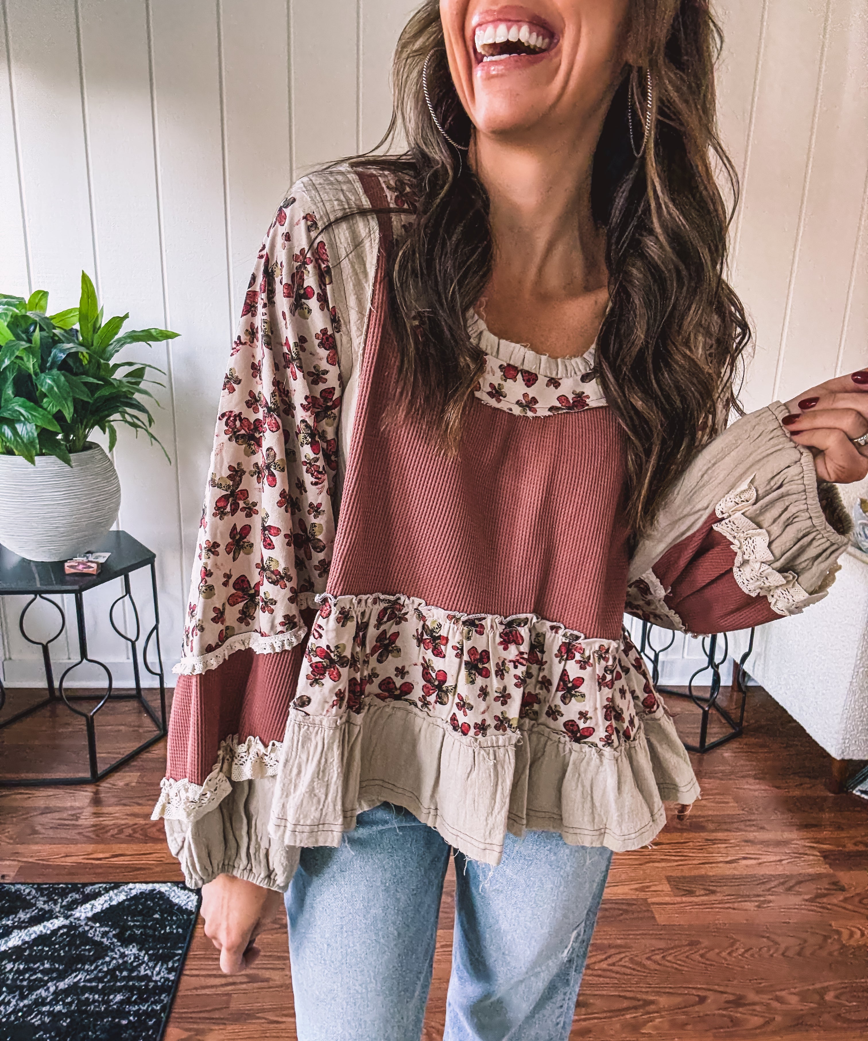 Oatmeal + Mocha Floral & Stripe Mix Oversize Dolman