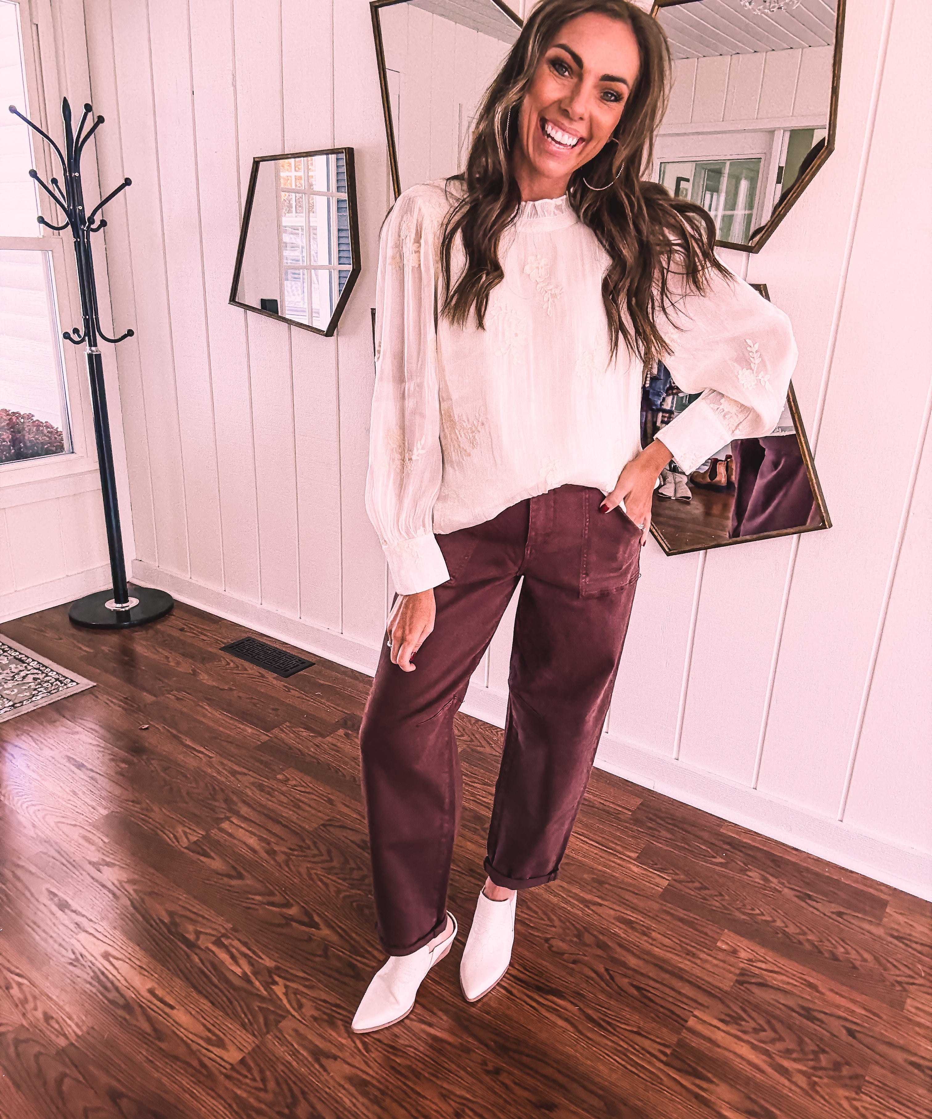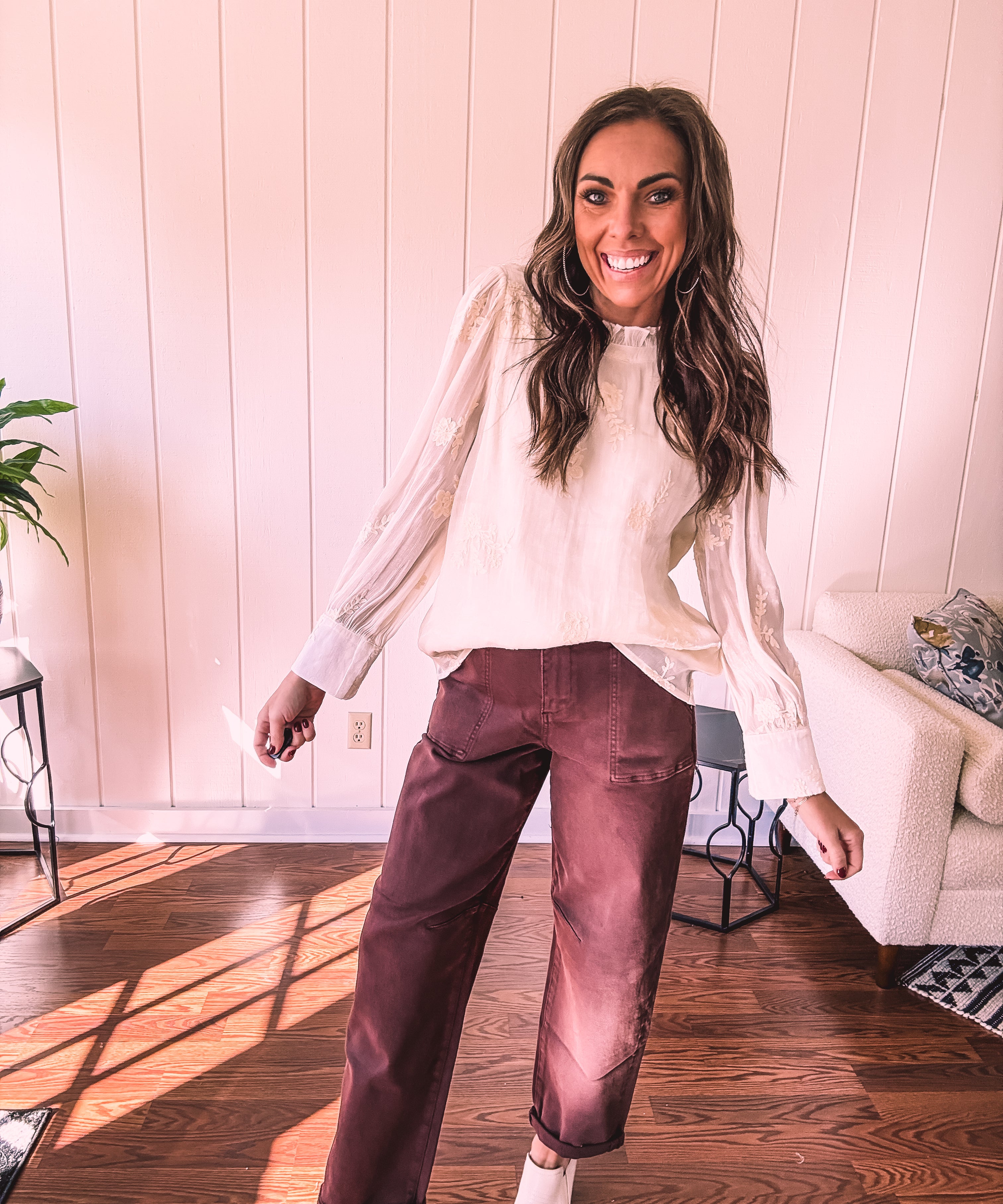 Ivory Chic Embroidered Blouse with Flutter Neckline