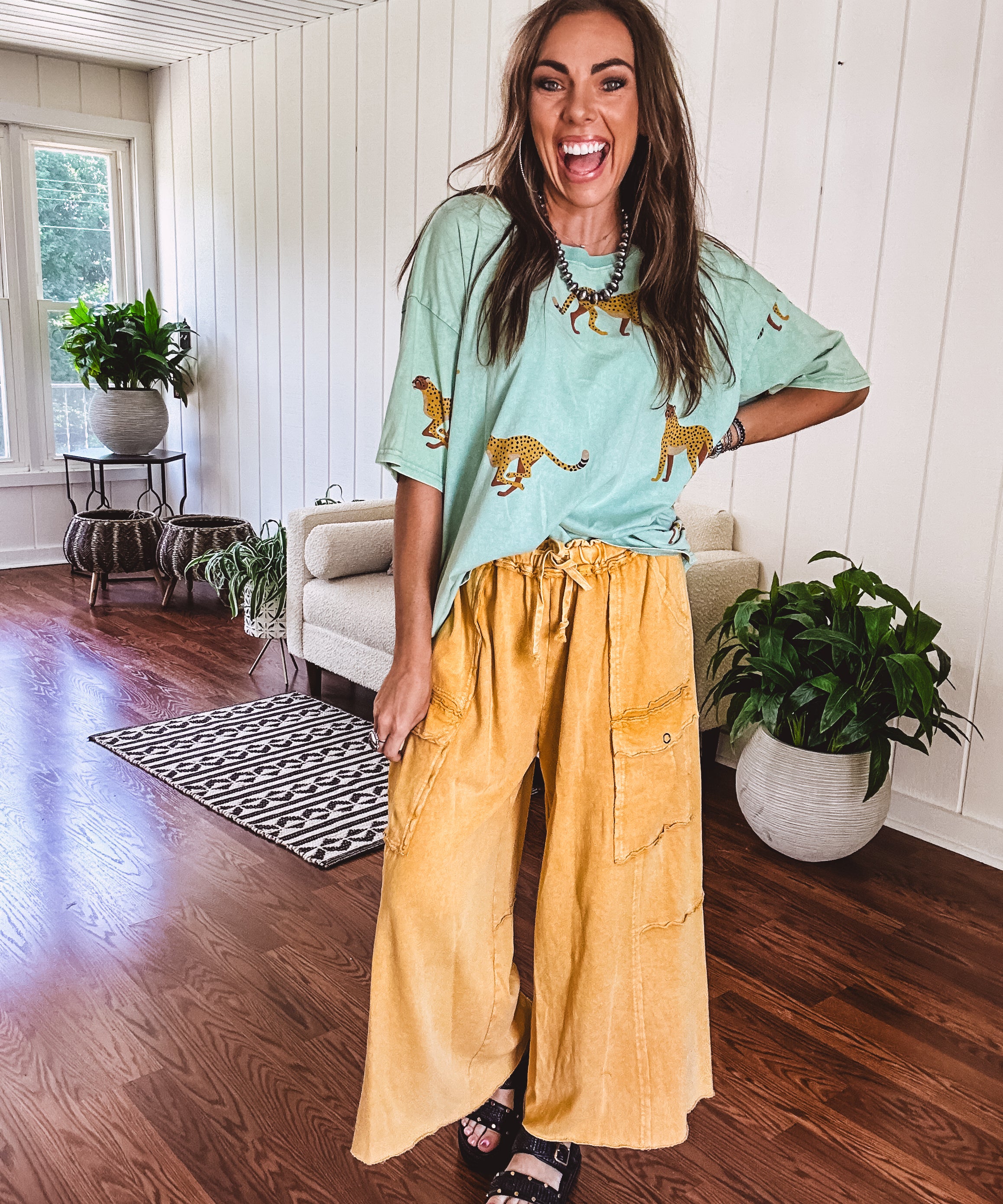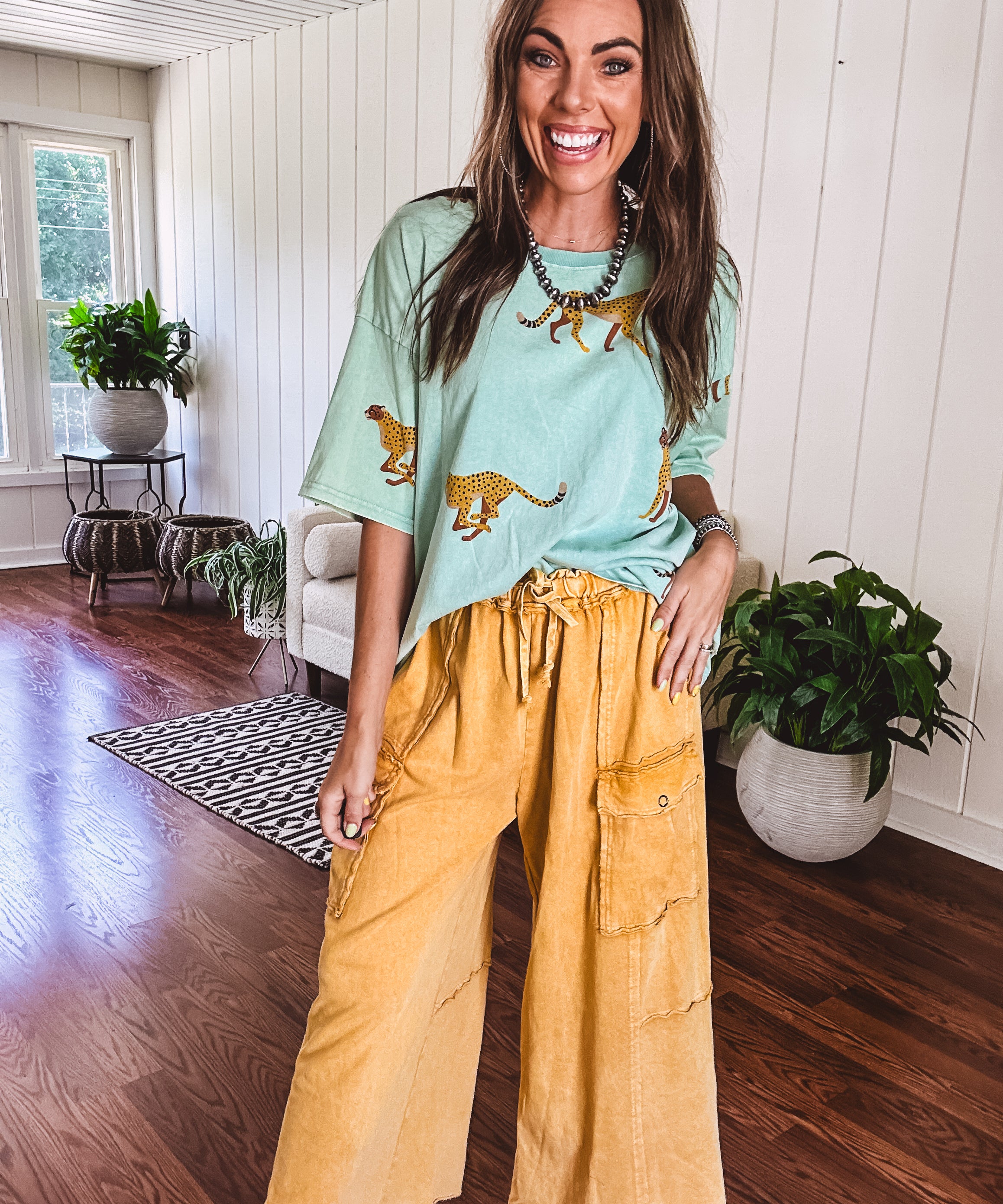 Camel Yellow Mineral Wash Wide Leg Utility Pant
