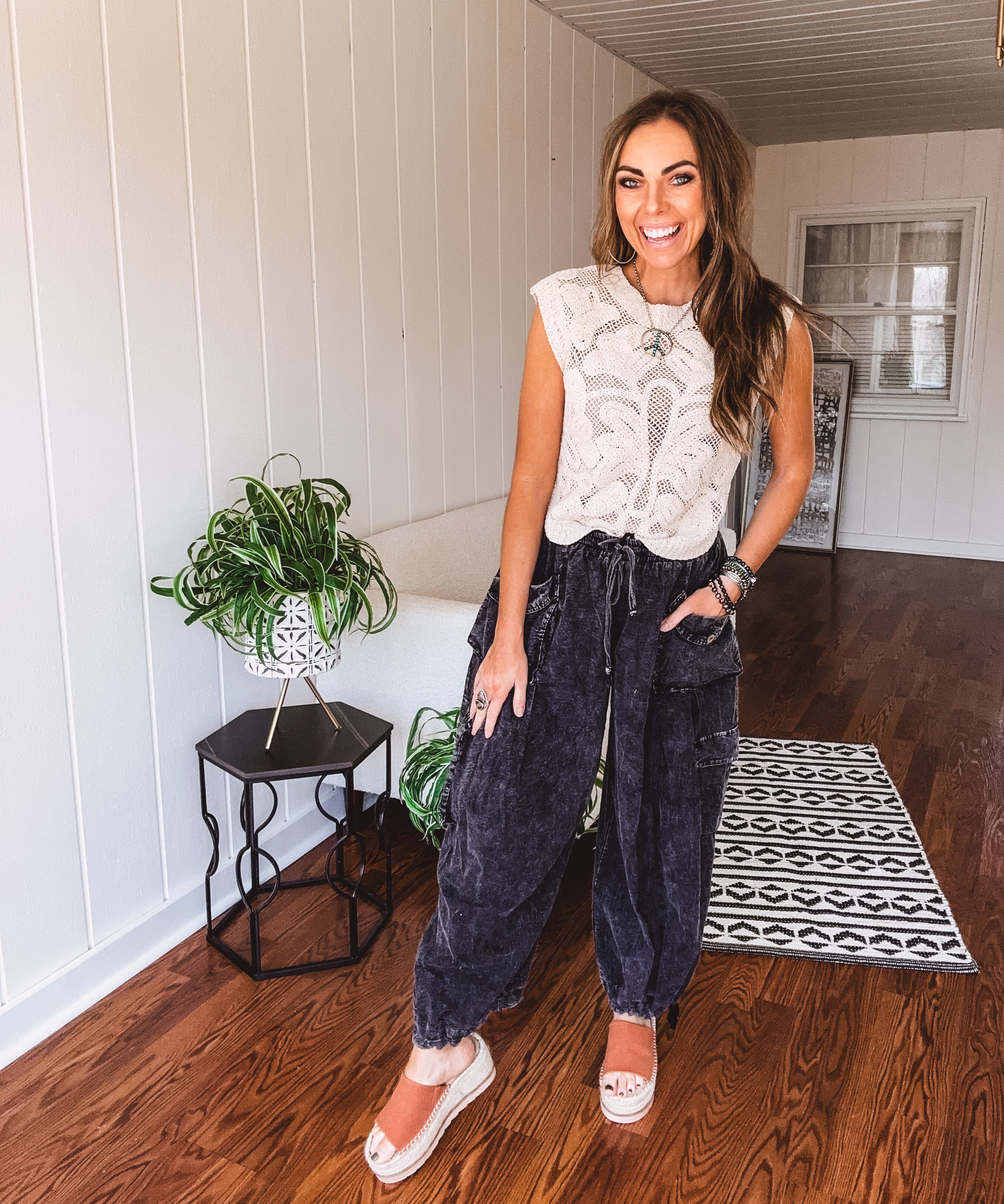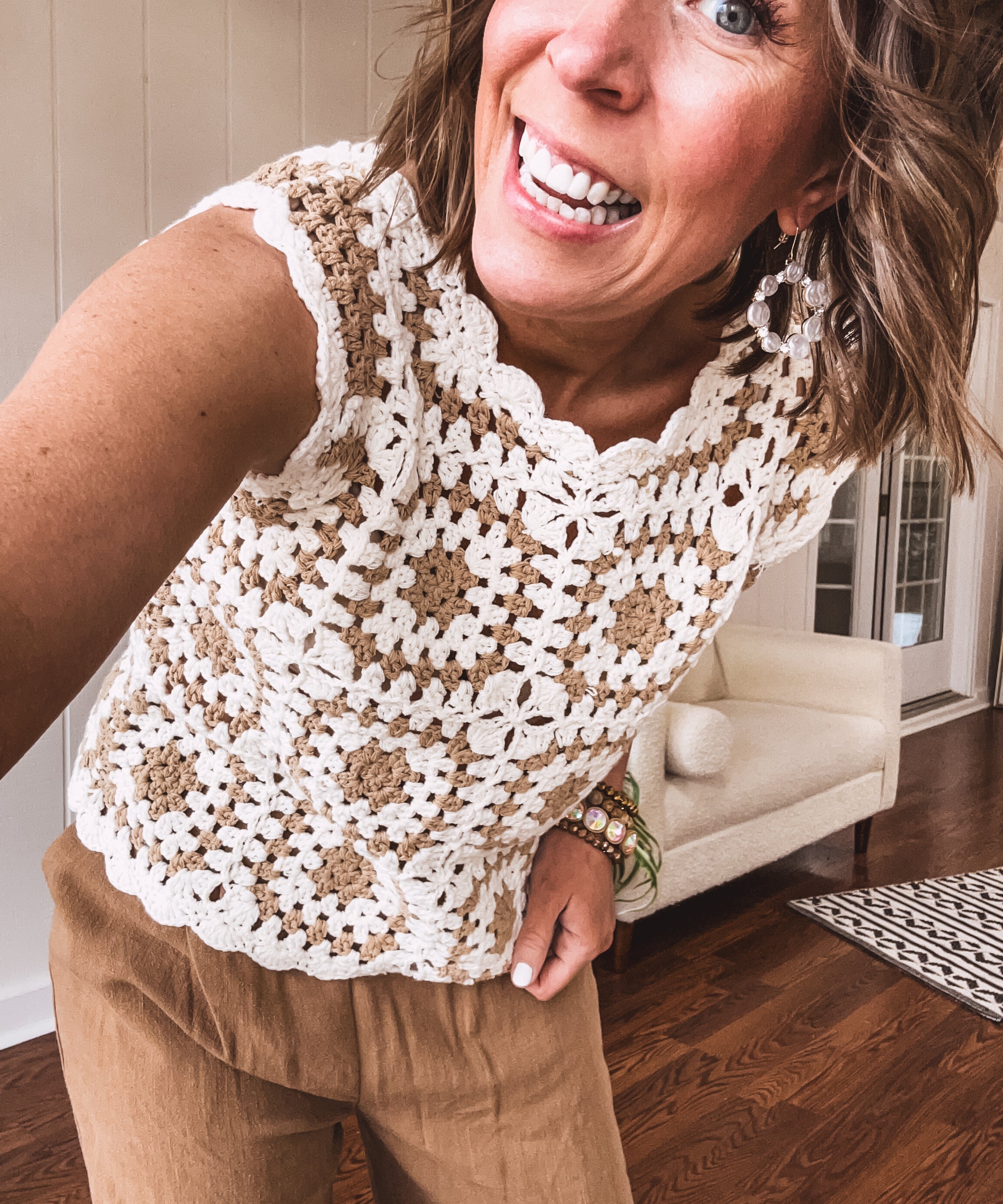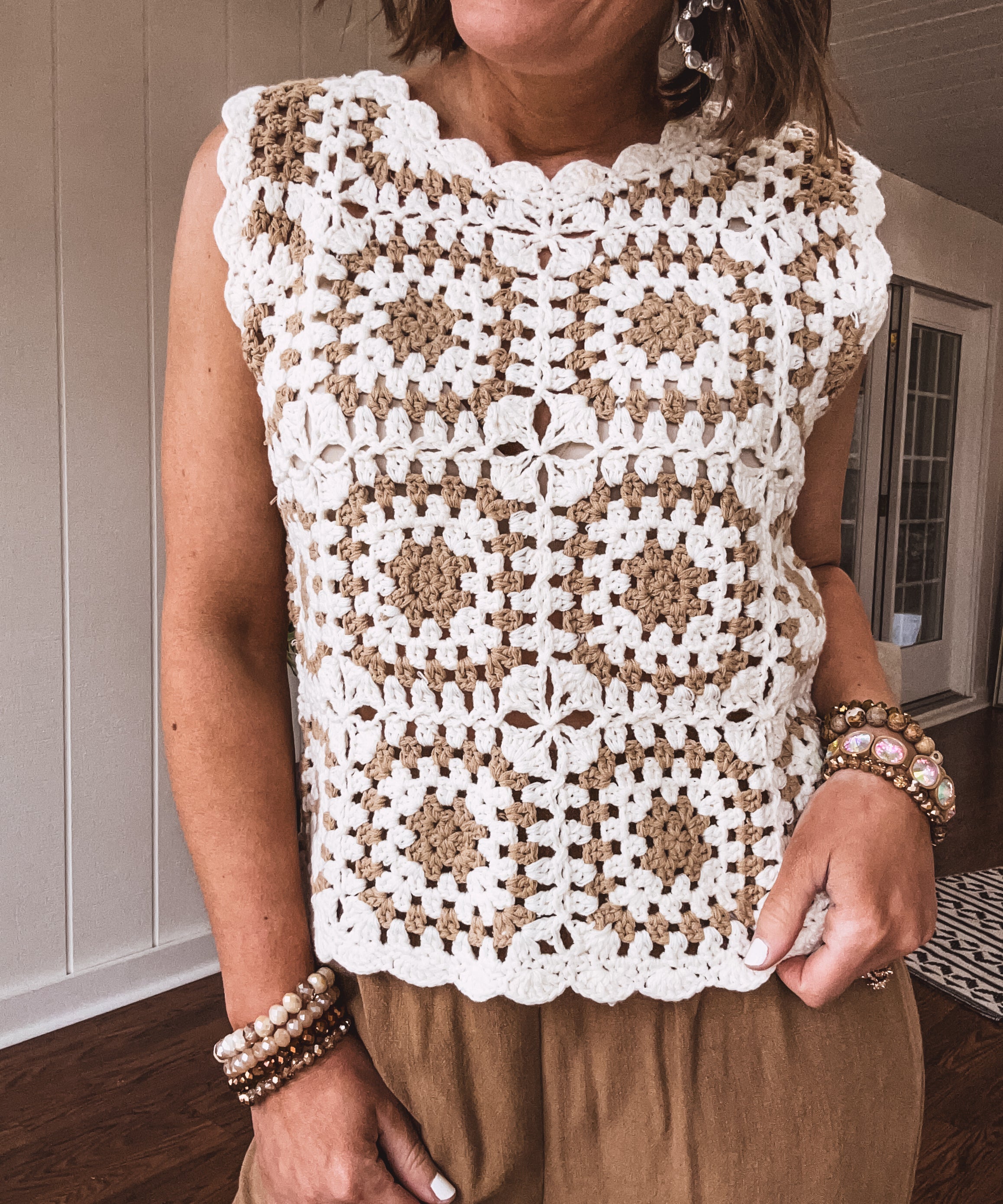 Cream + Taupe Mix Crochet Sweater Tank