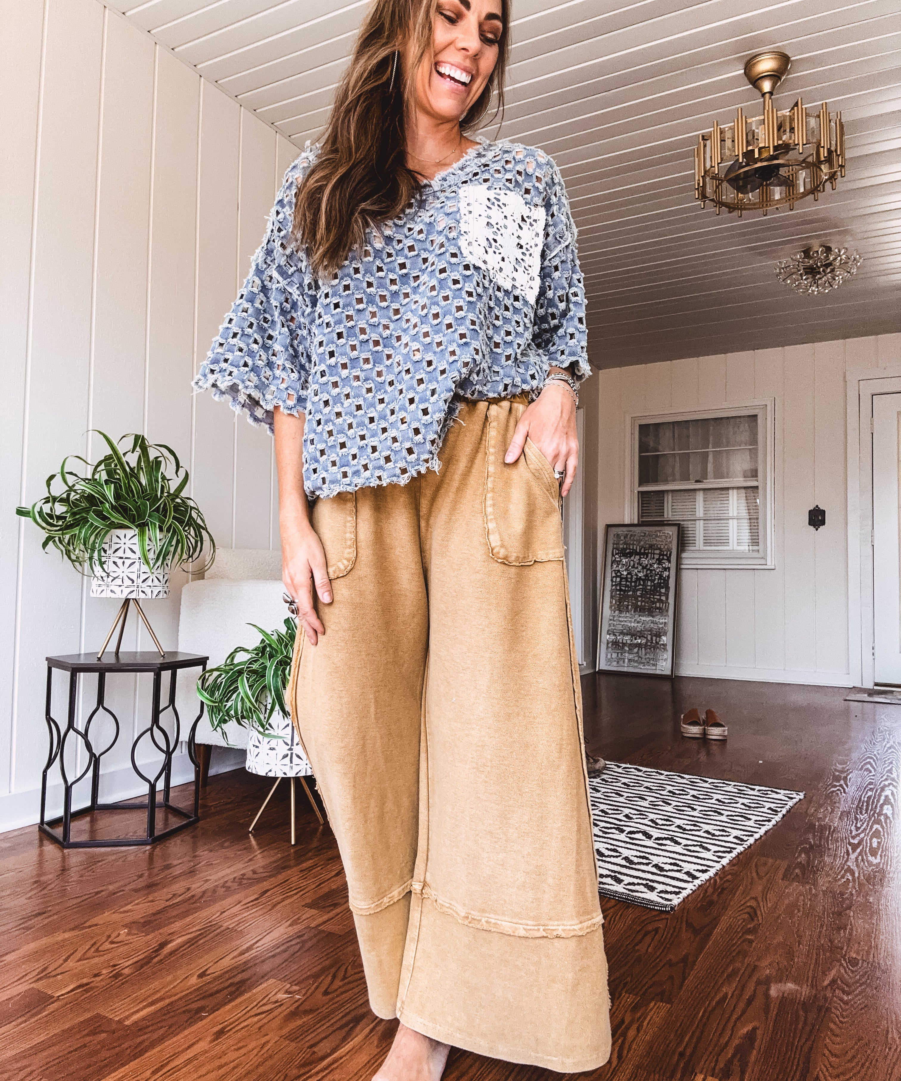 Washed Wide Leg Pocket Pant