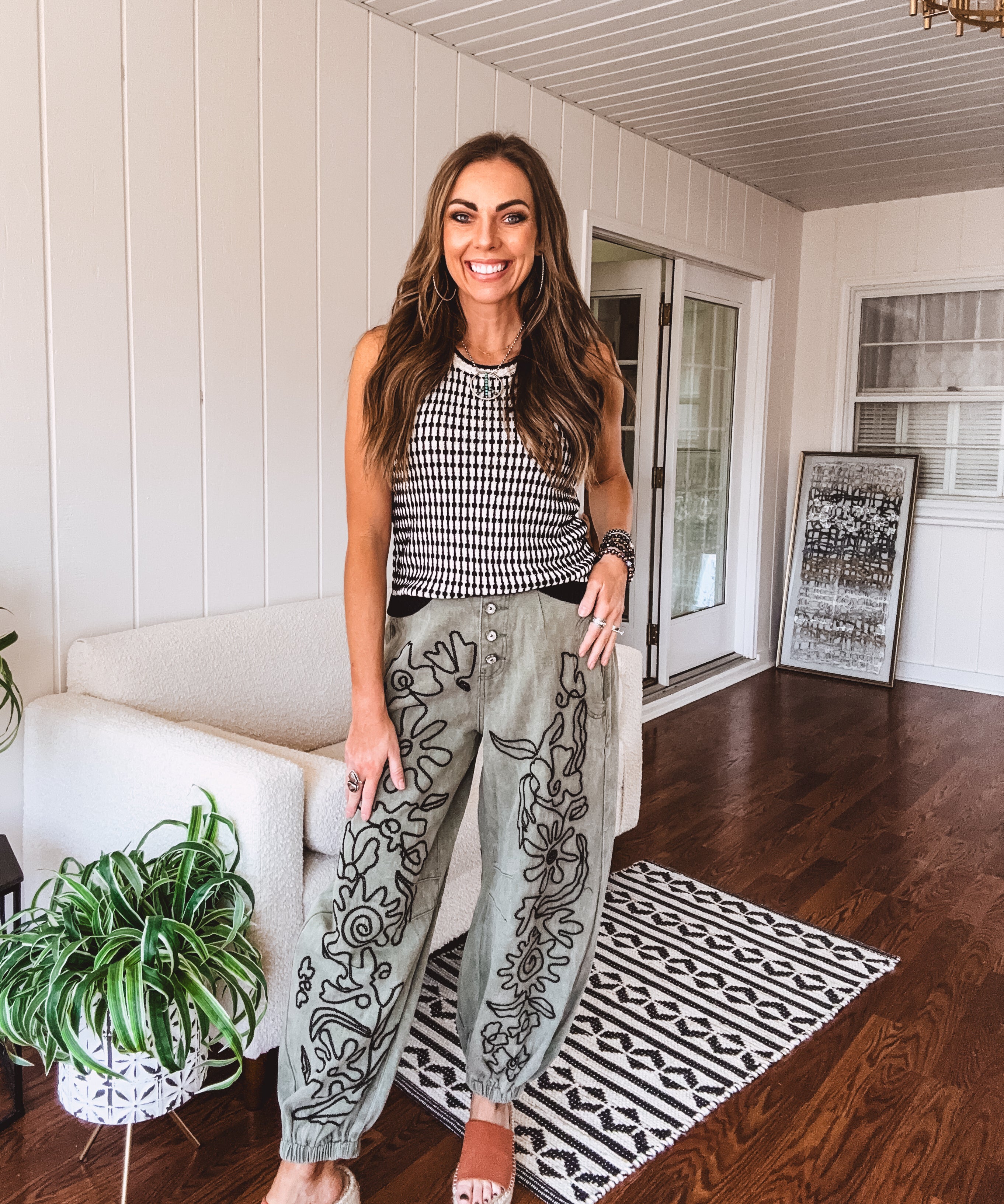 Floral Embroidered Twill Pant