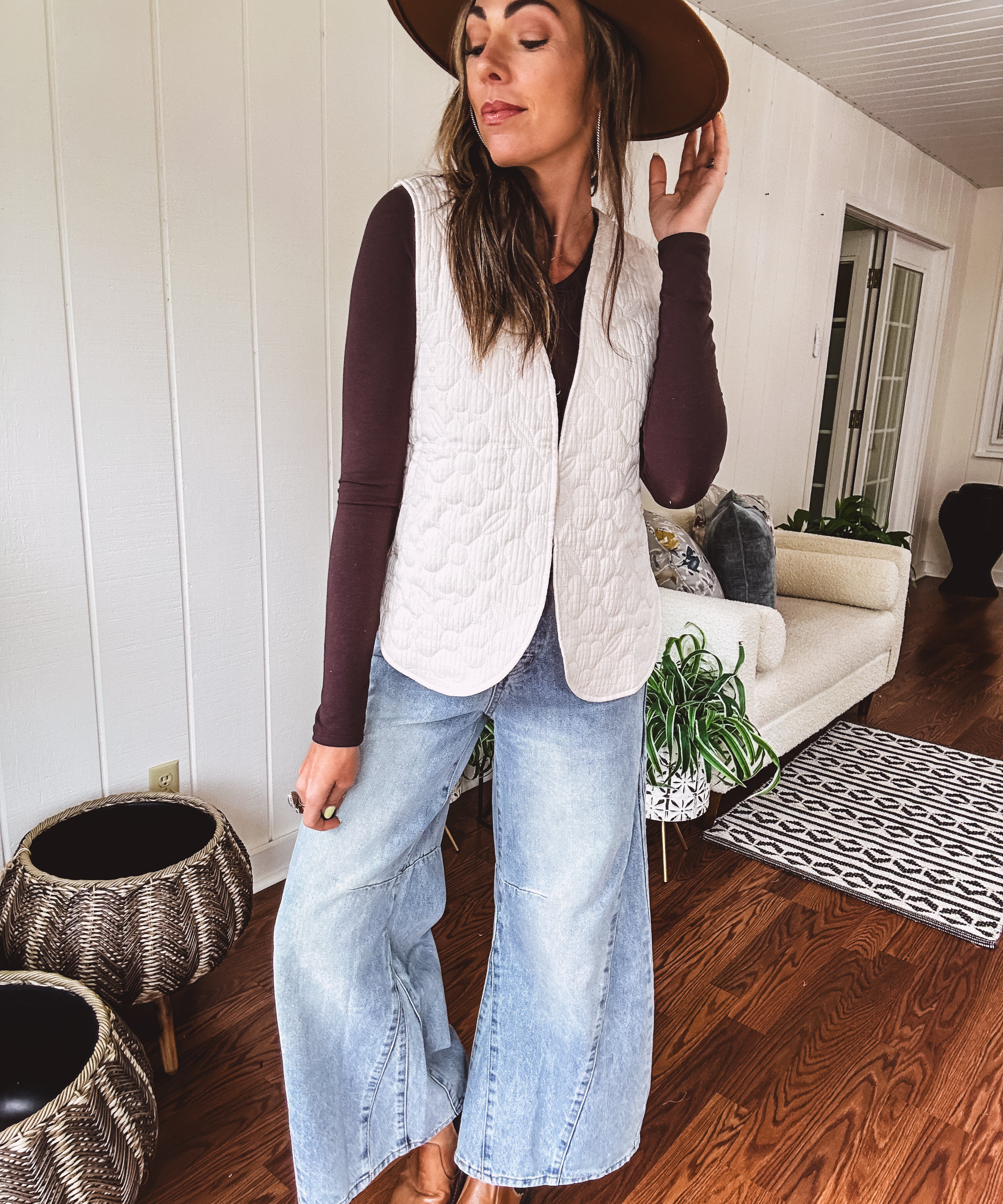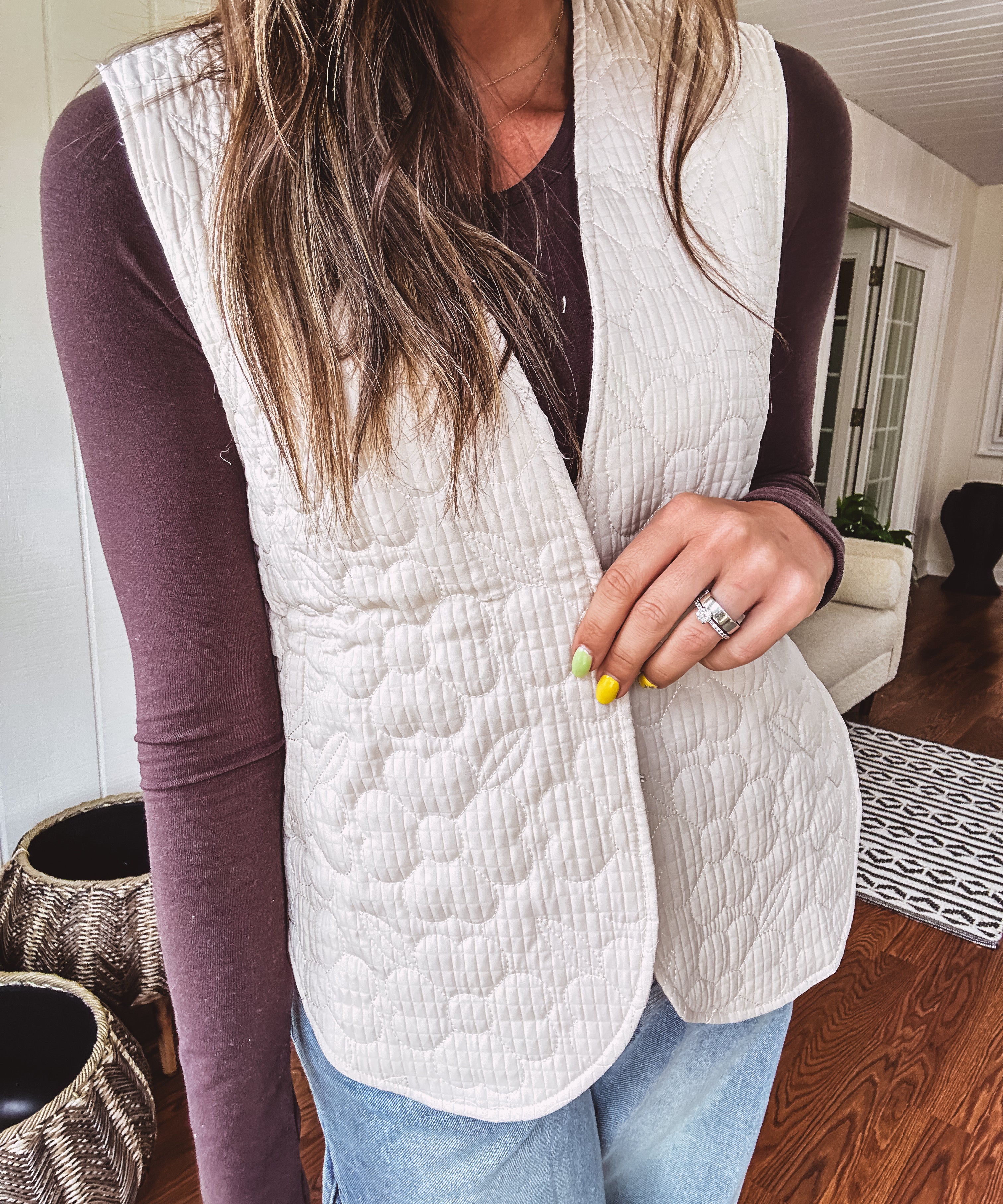 Cream Flower Stitch Padded Vest