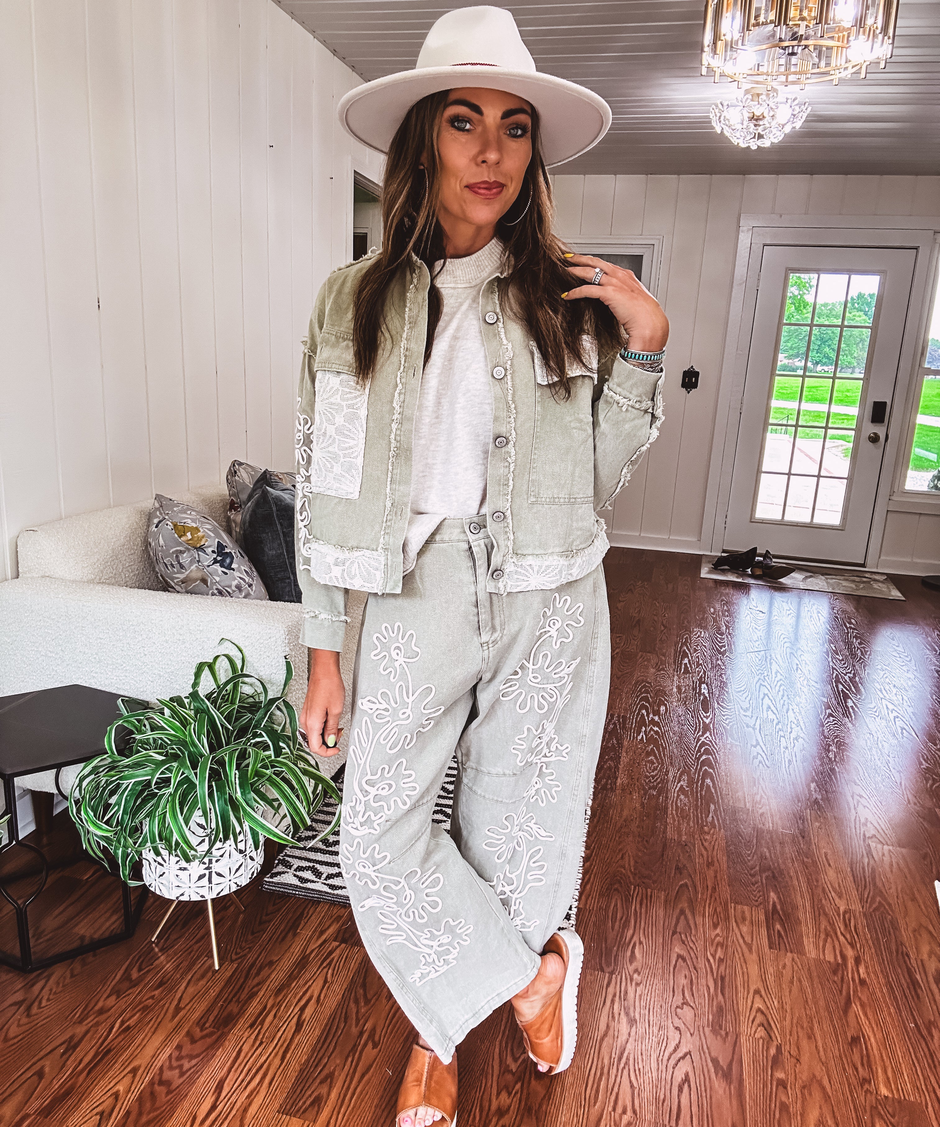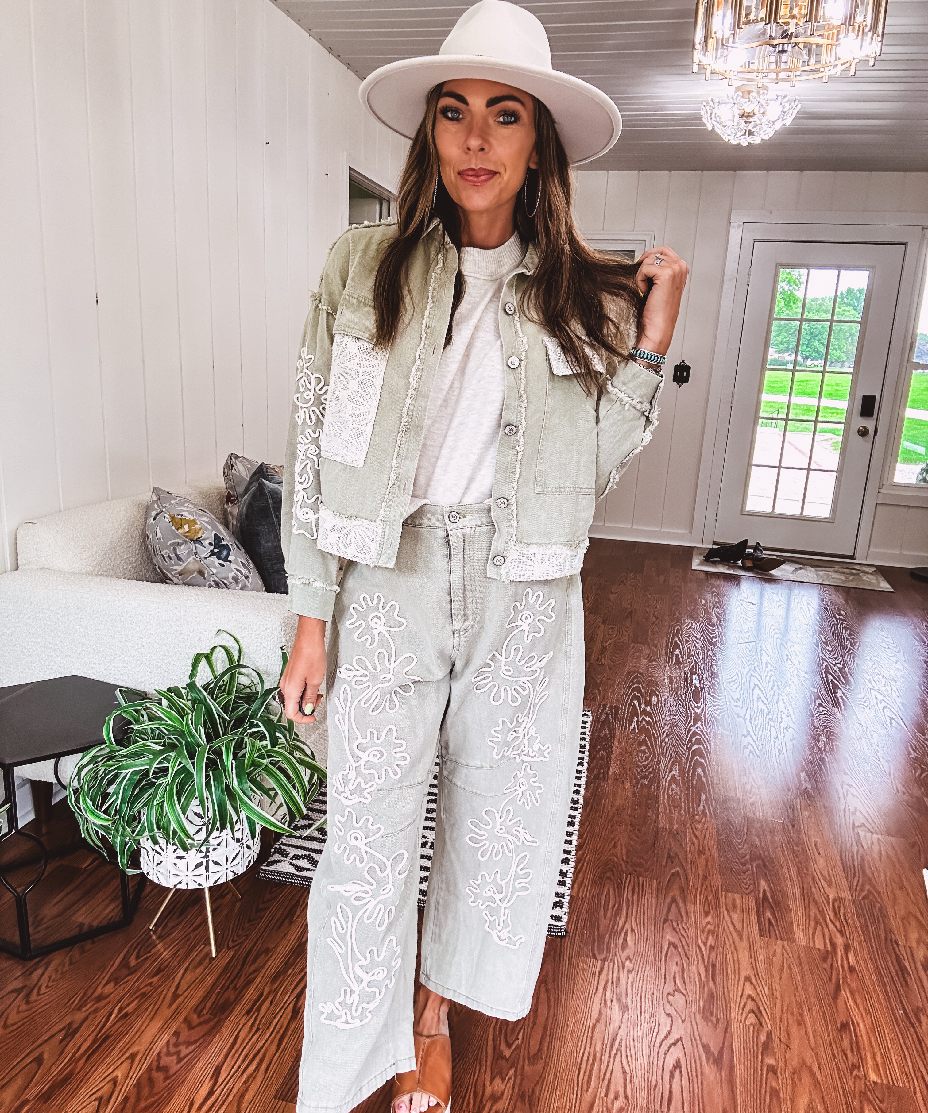 Sage Cord Floral Embroidered Jacket